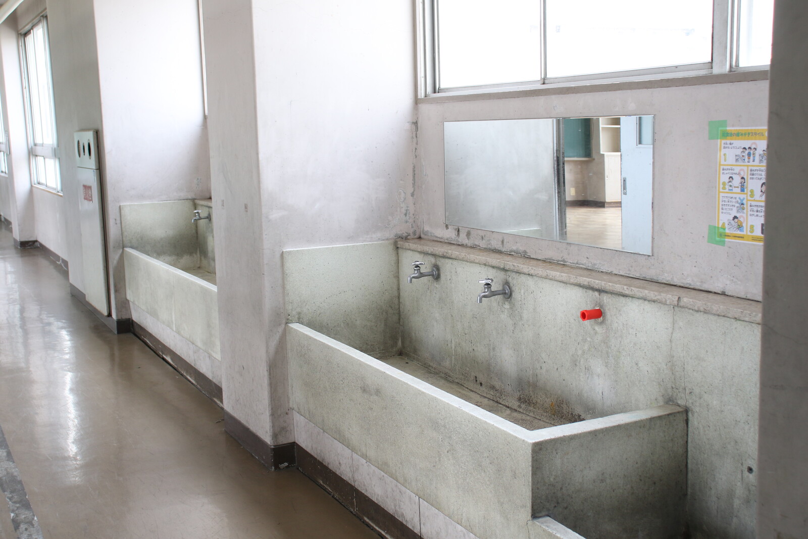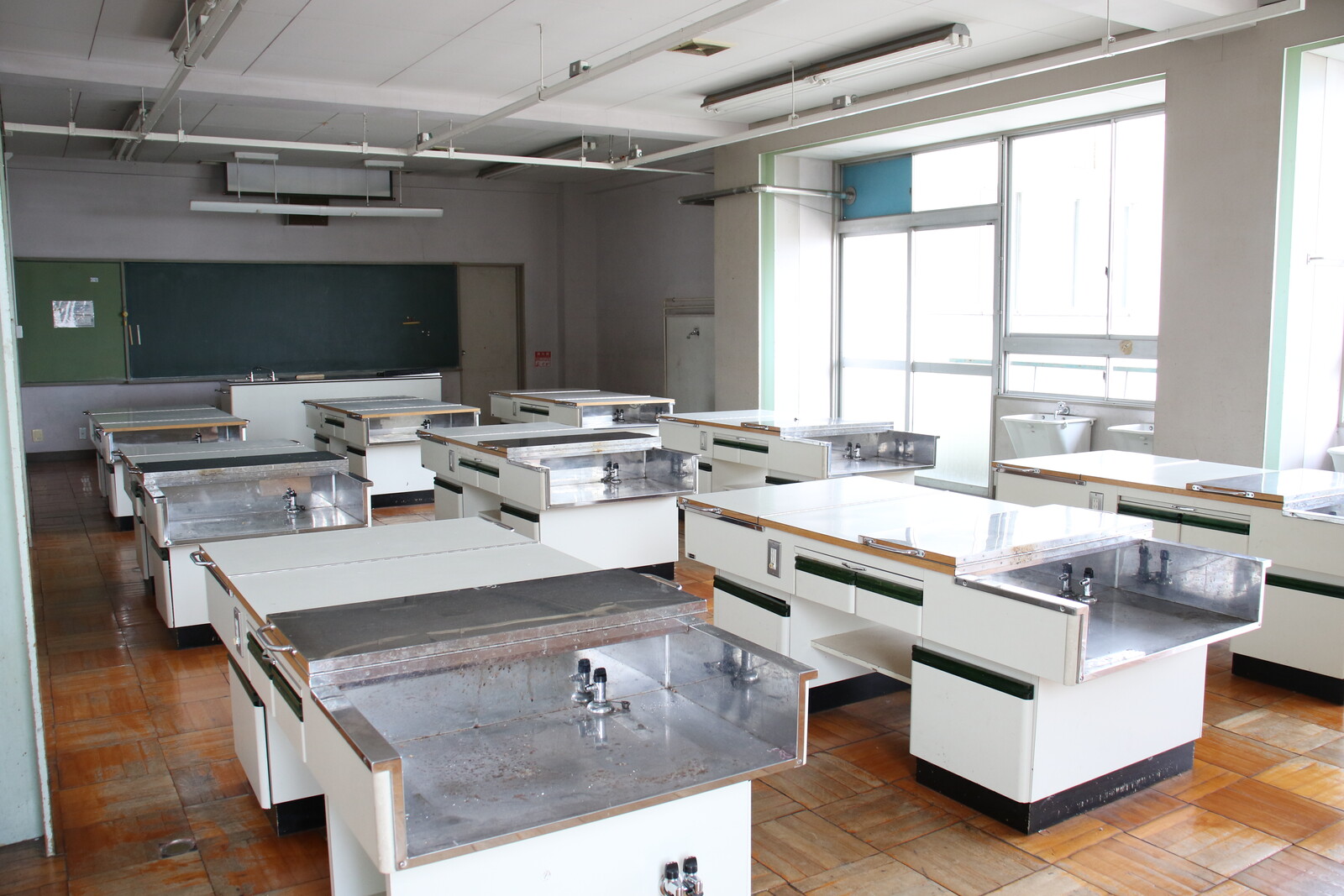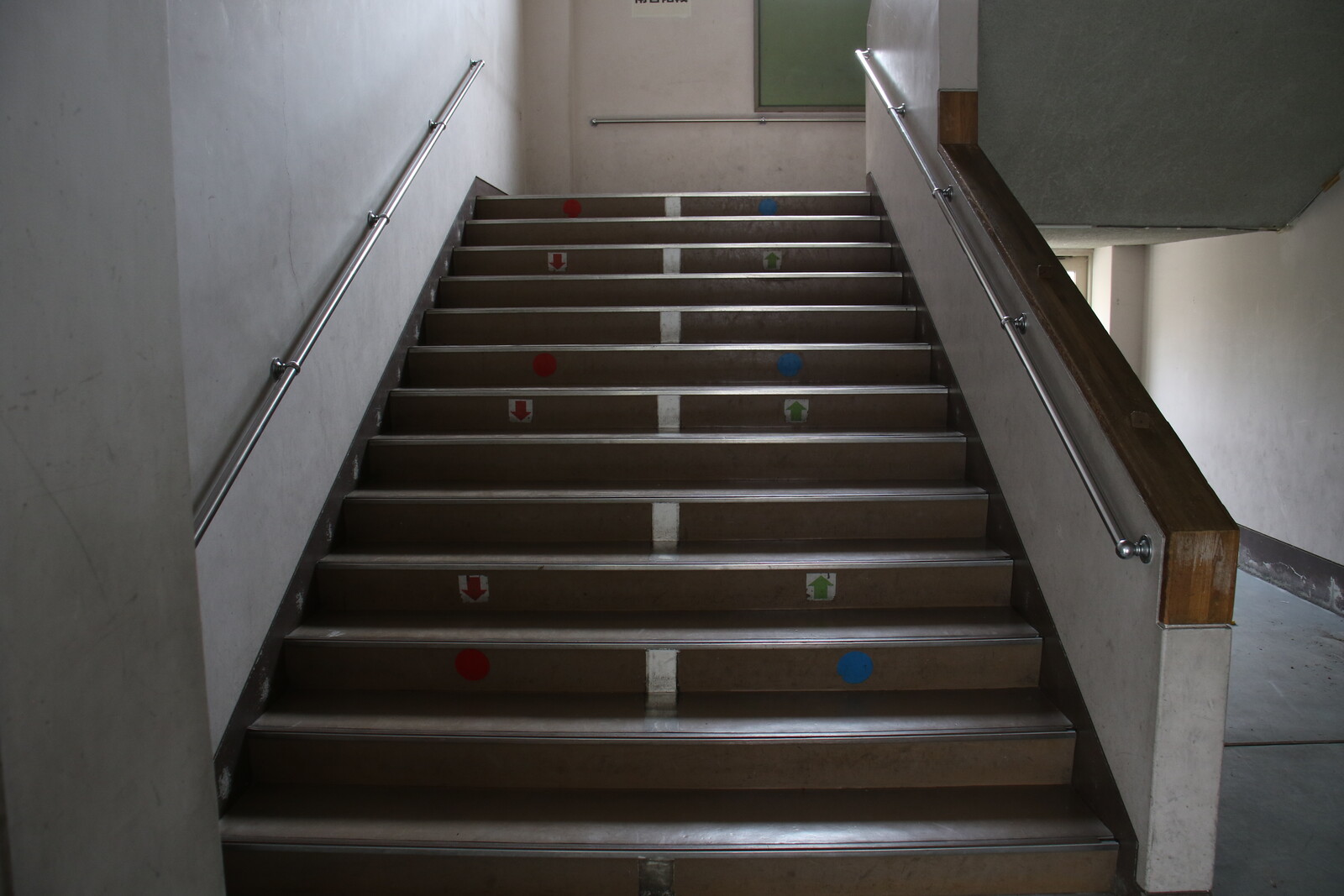校内には、本来あるべき机や椅子は既に撤去されていました。