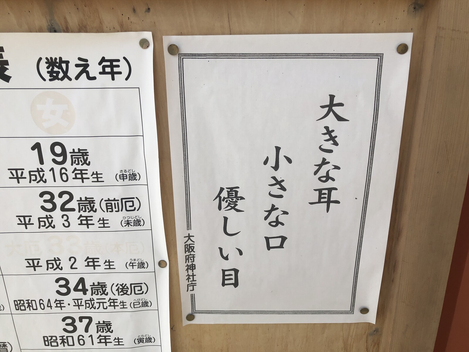 その掲示板には、厄年の年表とかも載っているんですが、今回は、そこで