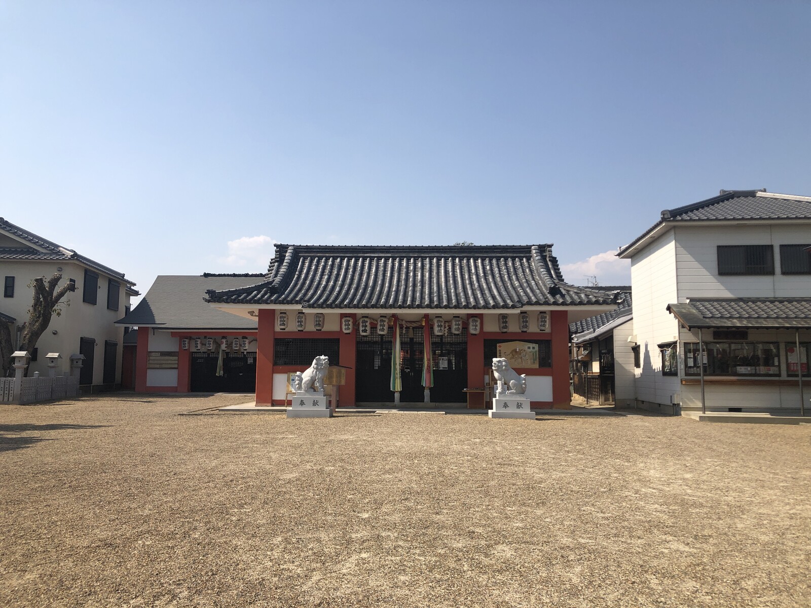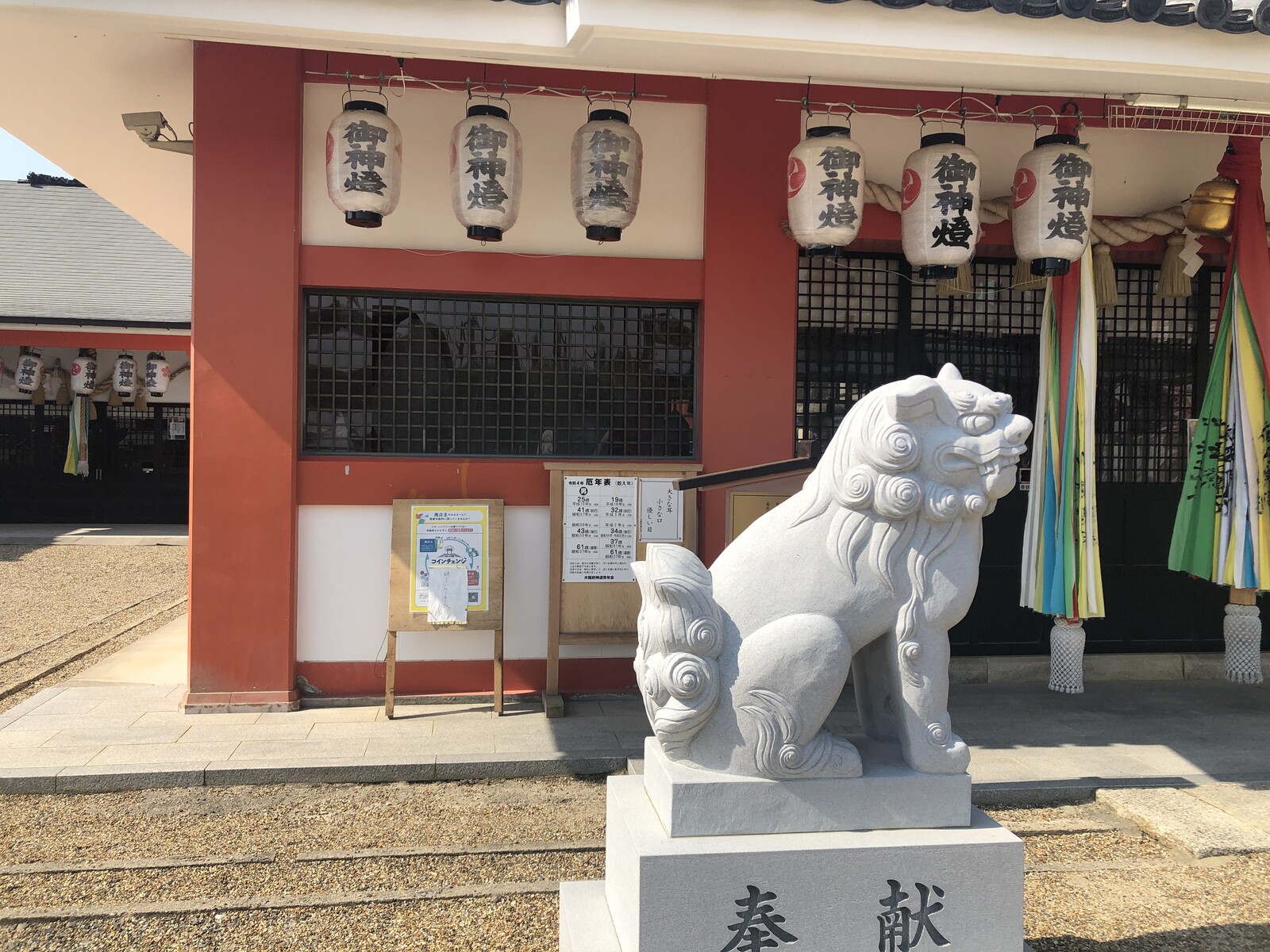 狛犬の後ろ、壁のところに掲示板
