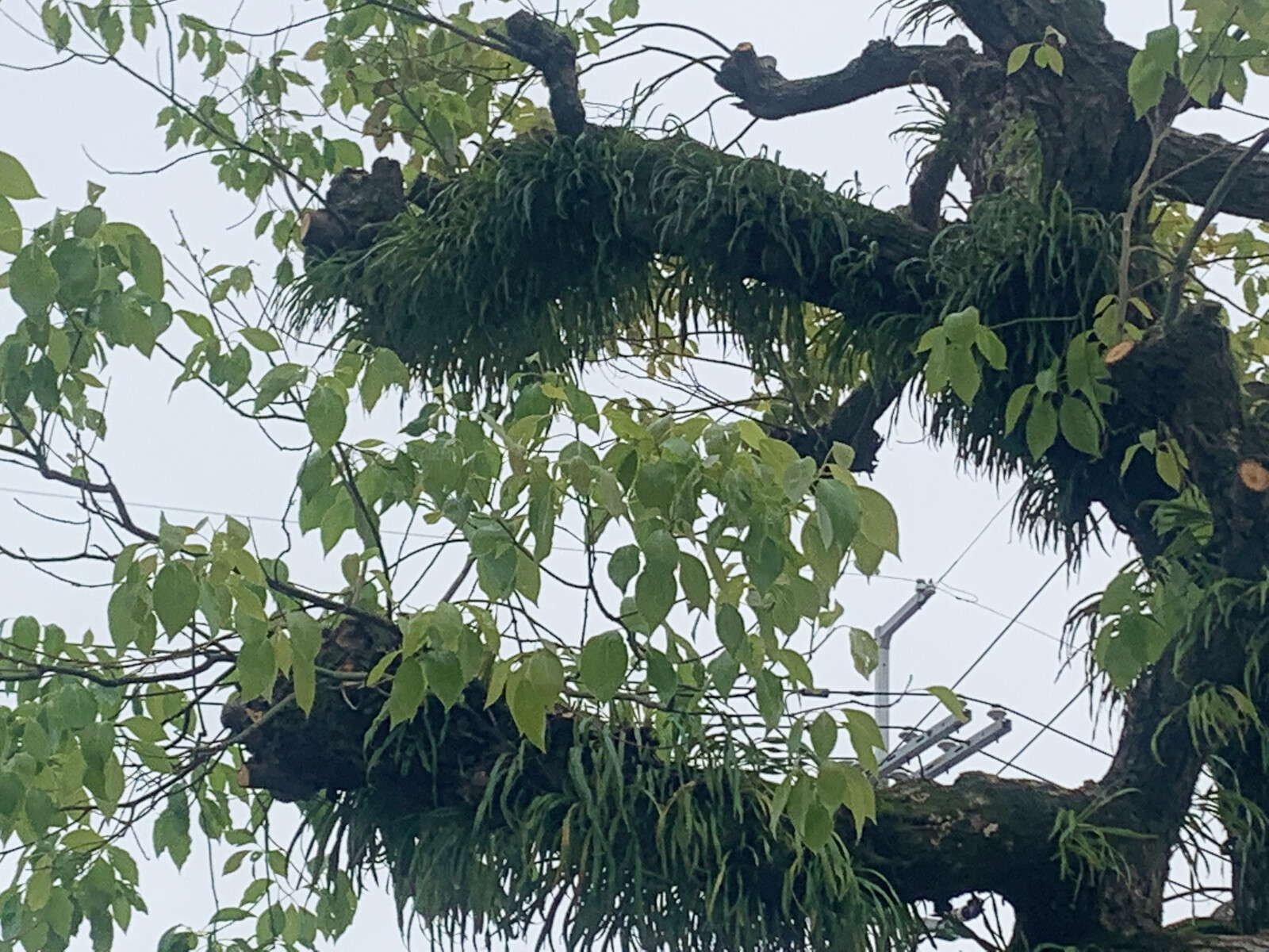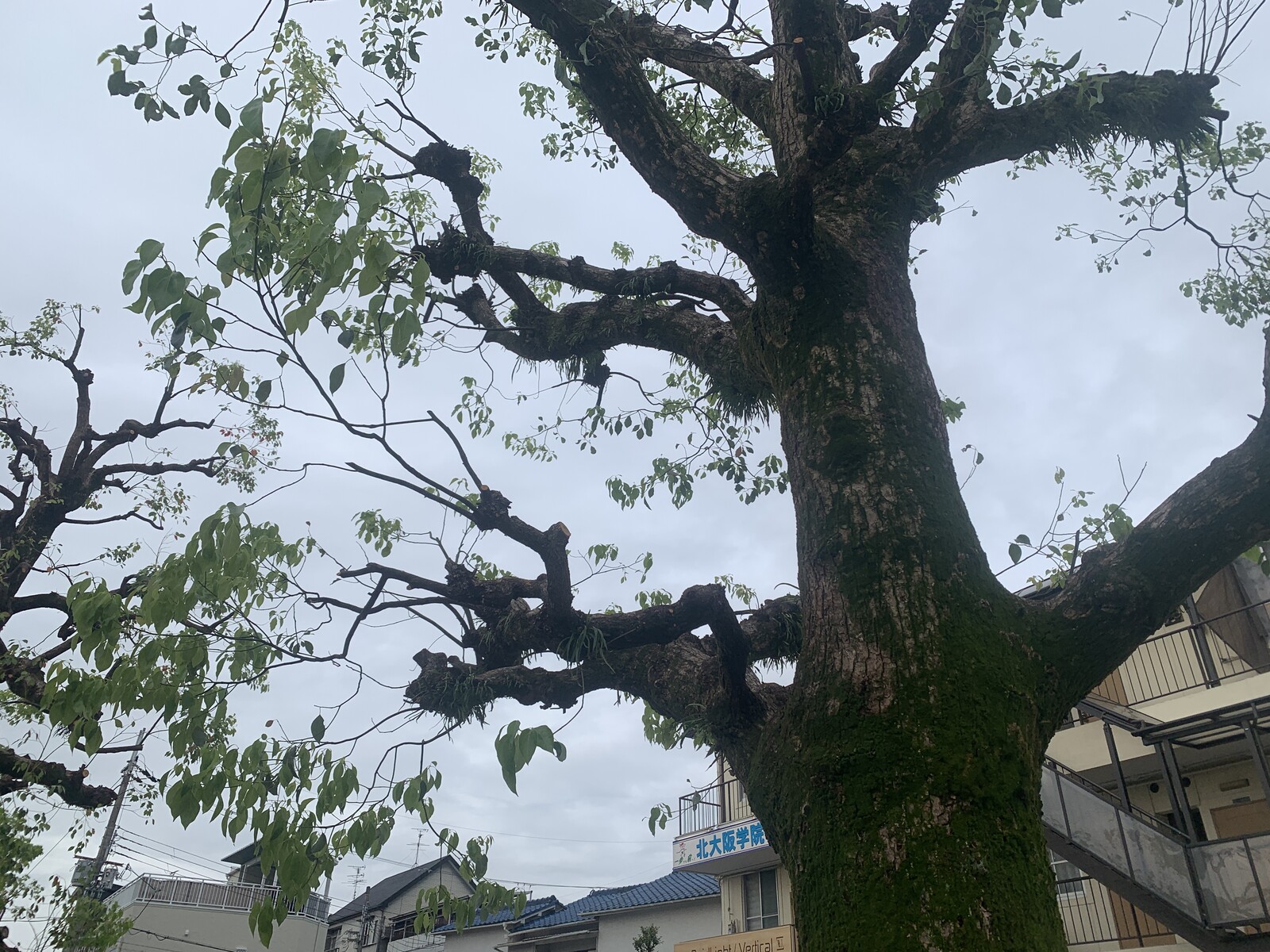 私市駅前広場のクスノキがサッパリスッキリなっている!そして、木から謎の草がたくさん生えていた。