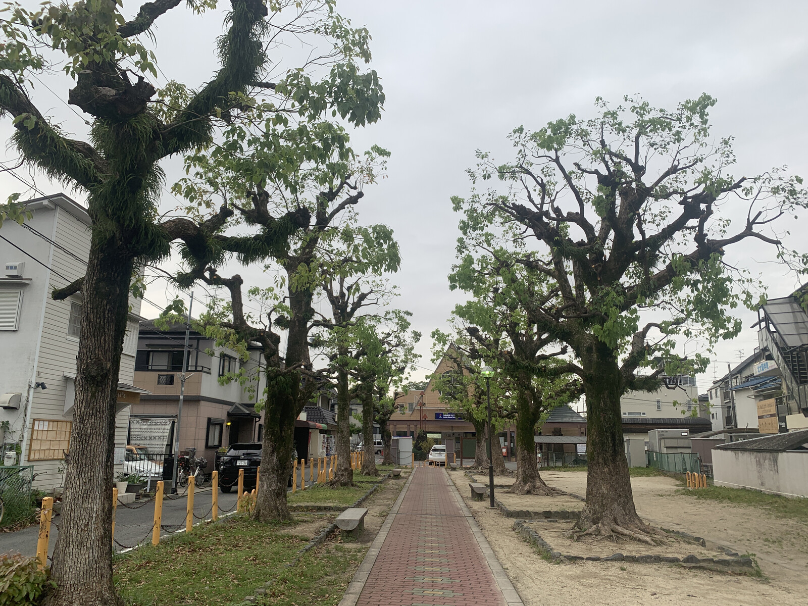 その私市駅前は、駅前広場になっていて、クスノキが植えられていたり、行き交う人々がちょっとゆっくりできる場所になっています。