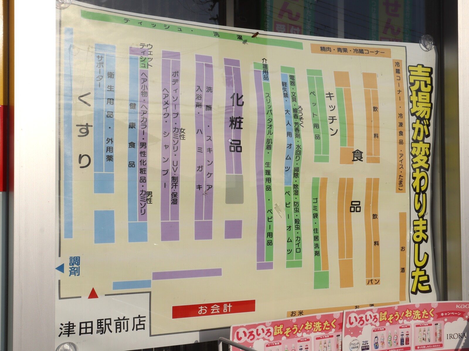 キリン堂津田駅前店に生鮮食品売り場が入ってる!売り場変更のお知らせもされてた