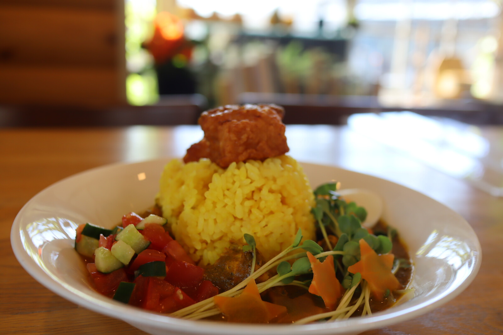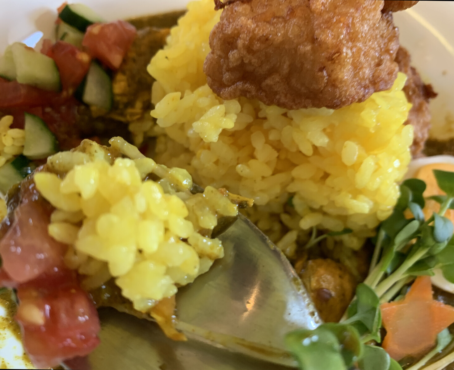 ルーにチキンがごろごろ入っていて嬉しいのに、さらに観音岩の唐揚げが!