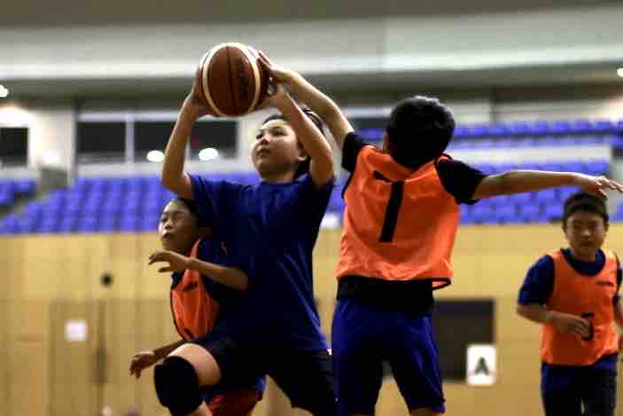 いきいきランドの体育館に「キュッキュッ」というバスケット特有の靴音と練習中の声が聞こえてきます。