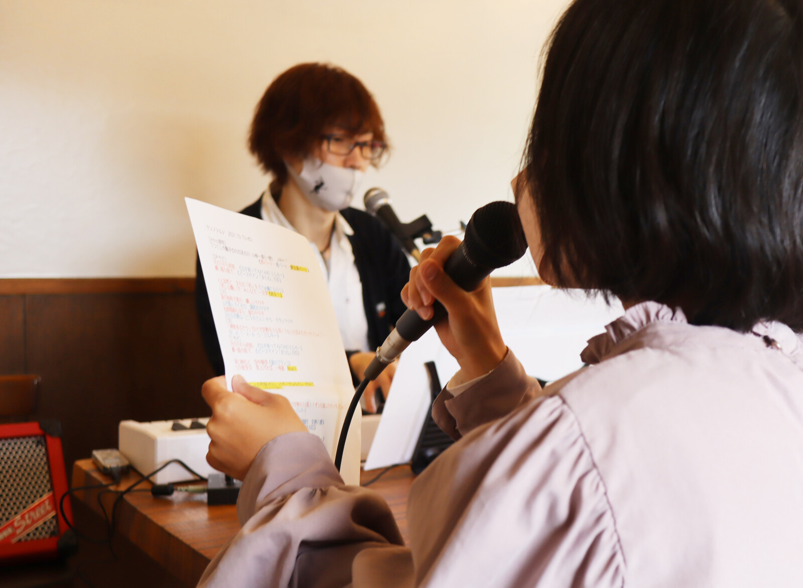 これもみんなが休憩しているすきに、熱唱しているっぽく撮ろう!ってなって撮った写真です。