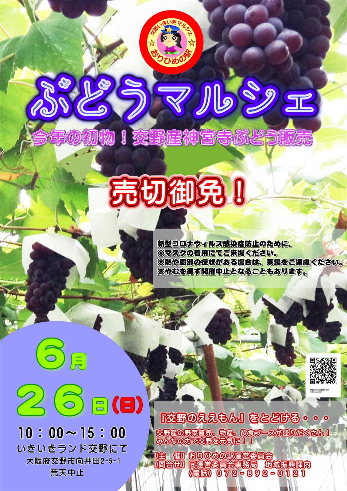 美味しいぶどうやいろいろなお店が出店され、交野がぶどう色に染まることでしょう。