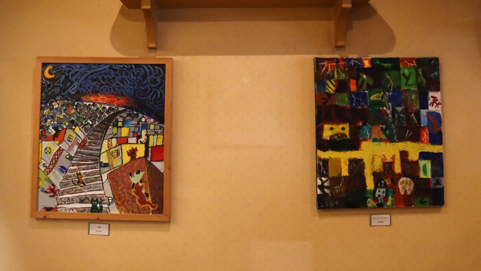 作品は入ってすぐの壁から始まり、絵だけに限らず立体的な作品も多く展示されています。