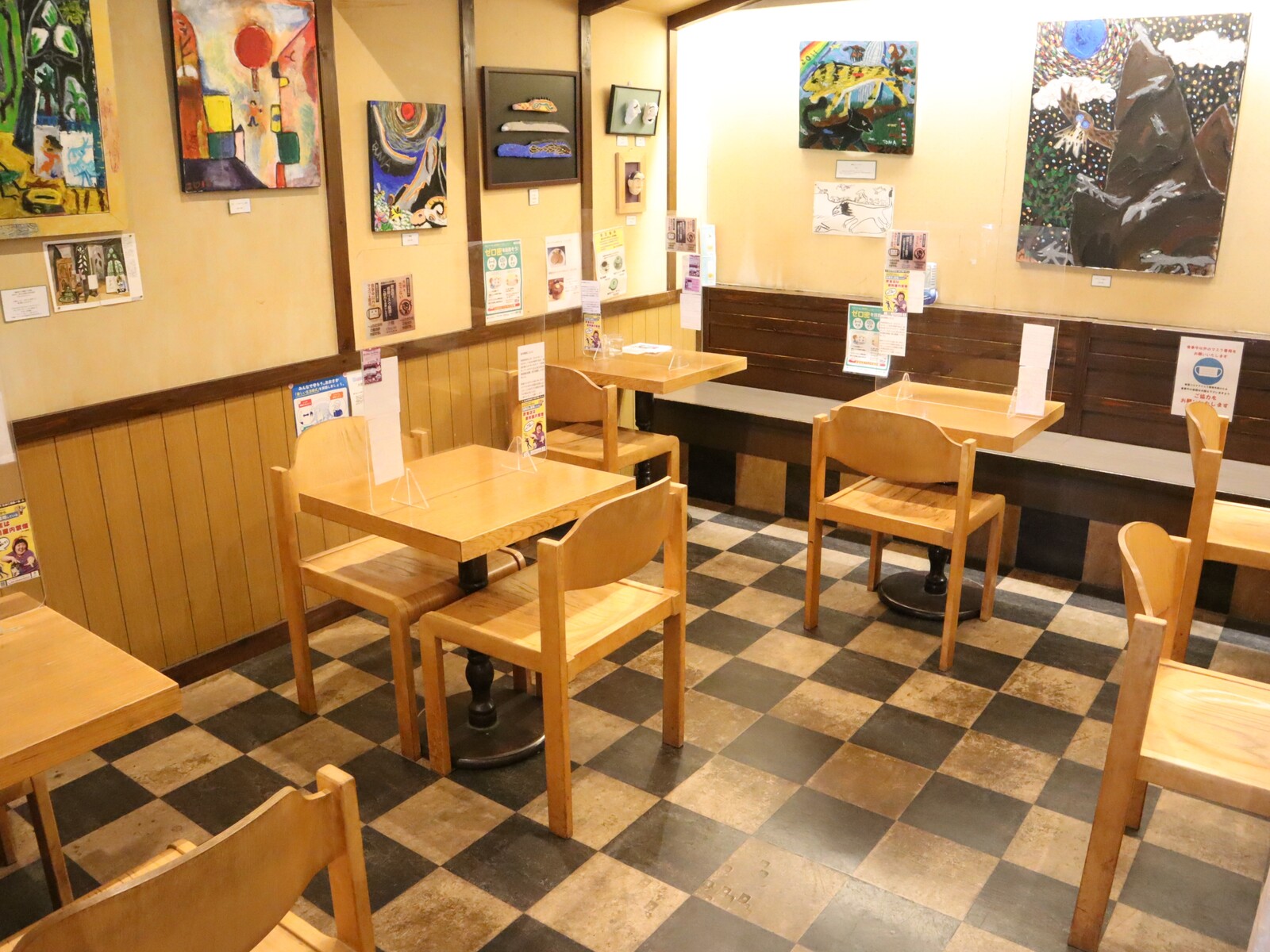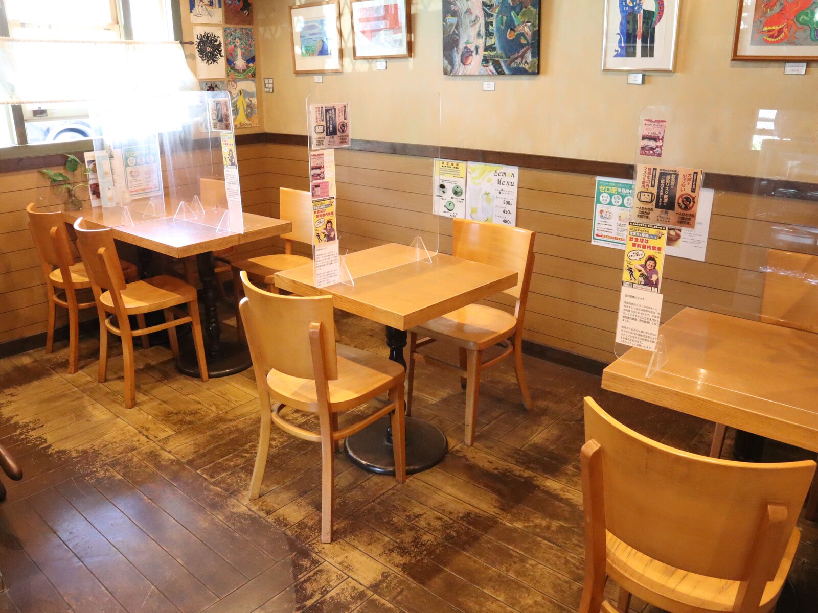 中はテーブル席がメインになっており、2人席や4人席どちらにもパーテンションが設置してあります。