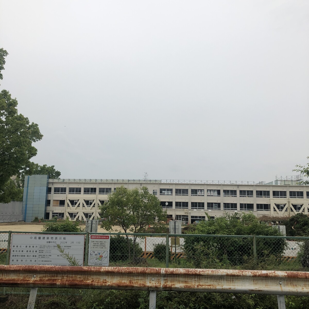 一中校区で進む小中一貫校(交野小学校、長宝寺小学校と交野市立第一中学校の統合。交野小学校に新しい校舎と建てる計画)が決定した結果、現在、新校舎ができる交野小学校のところの解体工事が始まっています。