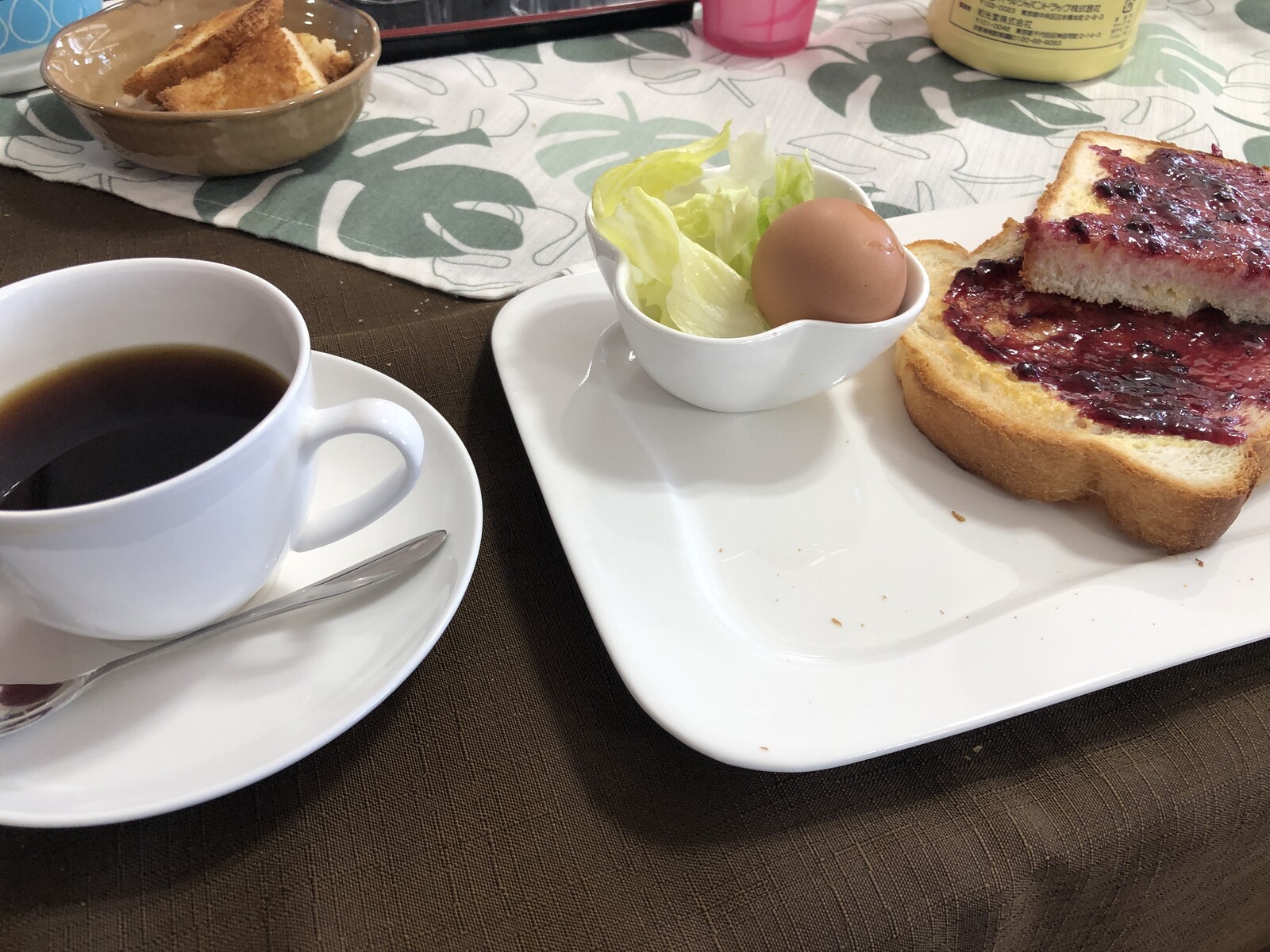 軽食(行った時は茹で卵とレタス、それから食パン2枚)にコーヒーがセットで二百円(税込)です!