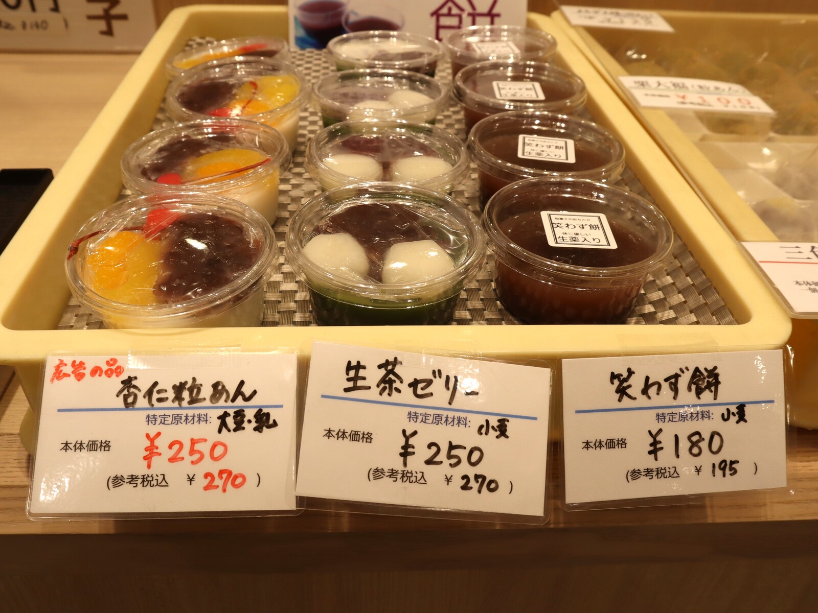 笑わず餅に生茶ゼリーに杏仁粒あん・・・