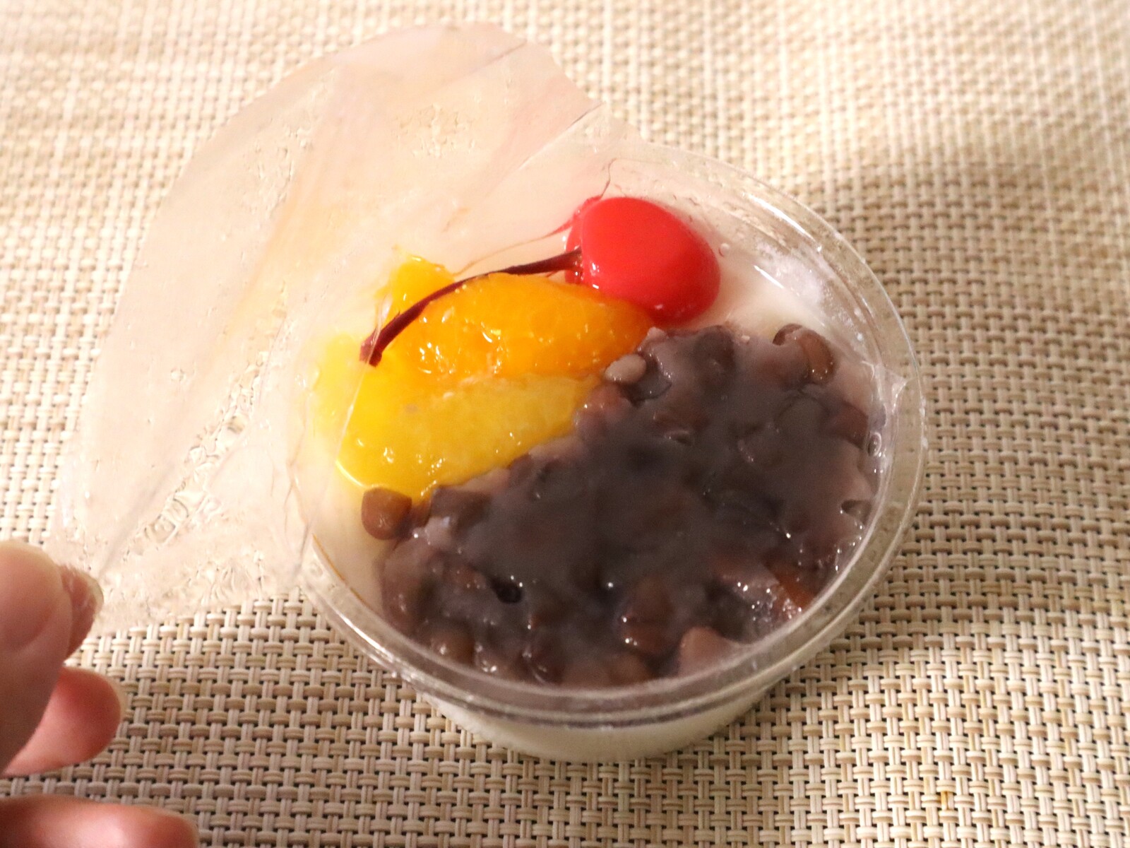 粒あんとフルーツの下にもフィルムがしいてあるので、こぼれないように気を付けつつ取っていきます。