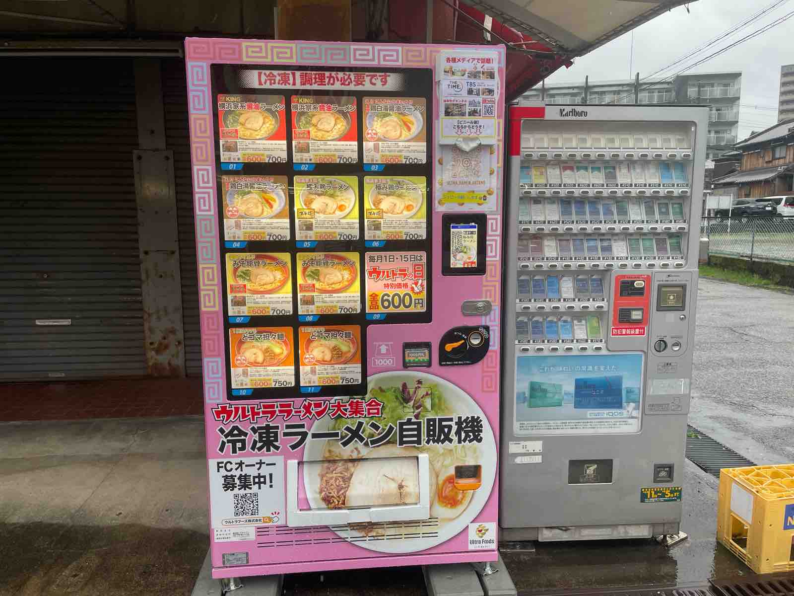 「ウルトララーメン大集合」の冷凍ラーメン自動販売機がJ R津田駅前のビックサン目の前に!1日、15日は割引あり!