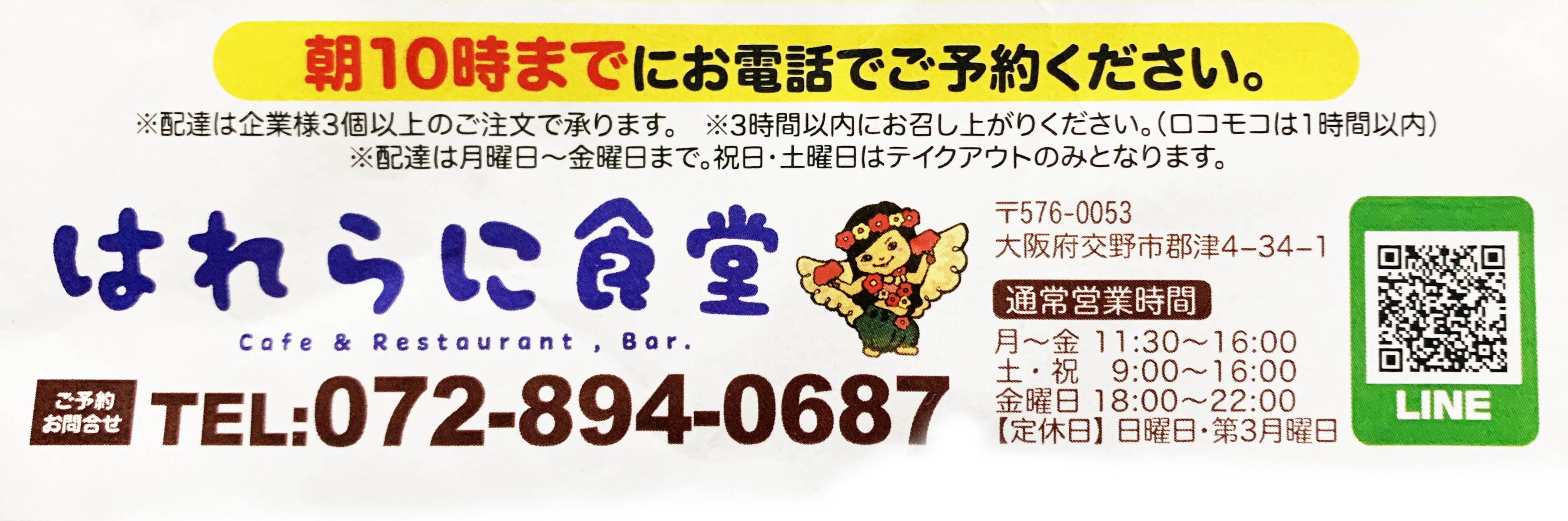 はれらに食堂のブログやSNSなどで最新情報をご確認ください。