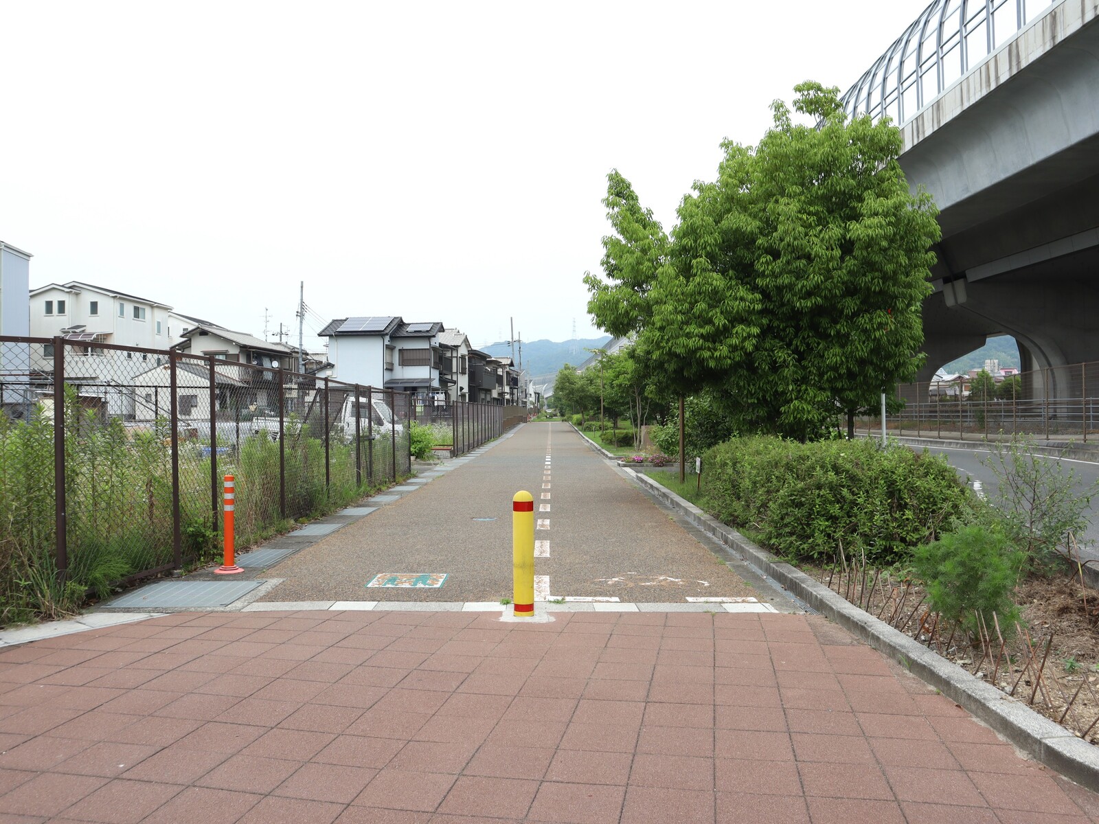 北河内サイクルラインと呼ばれる自転車が通れる道と歩道が一緒になった通りです。