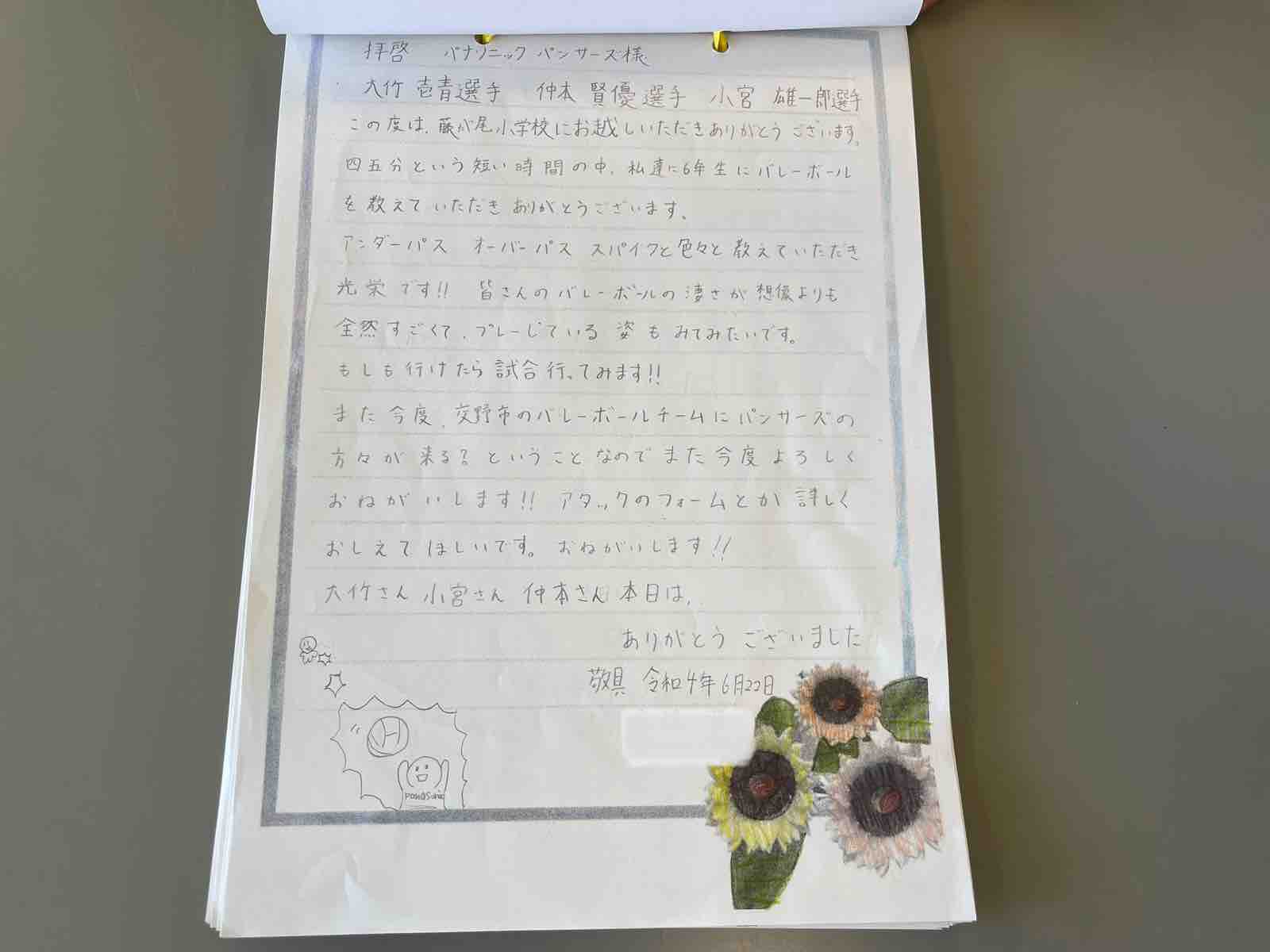 いろんなスパイクを教えてもらって嬉しかった、試合で試してみたいと書いている子もいれば、生で見れて嬉しい、でもスパイクが強すぎて少し怖かったという感想があったり、子ども達の反応もそれぞれ。