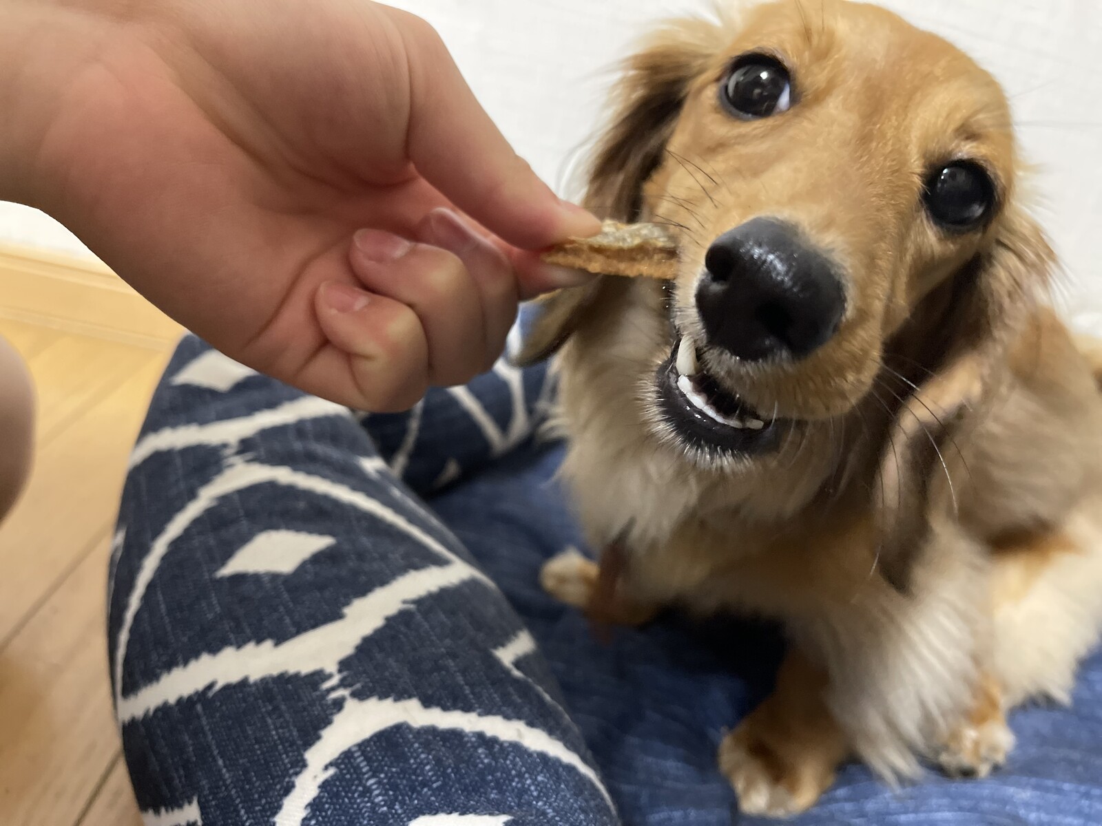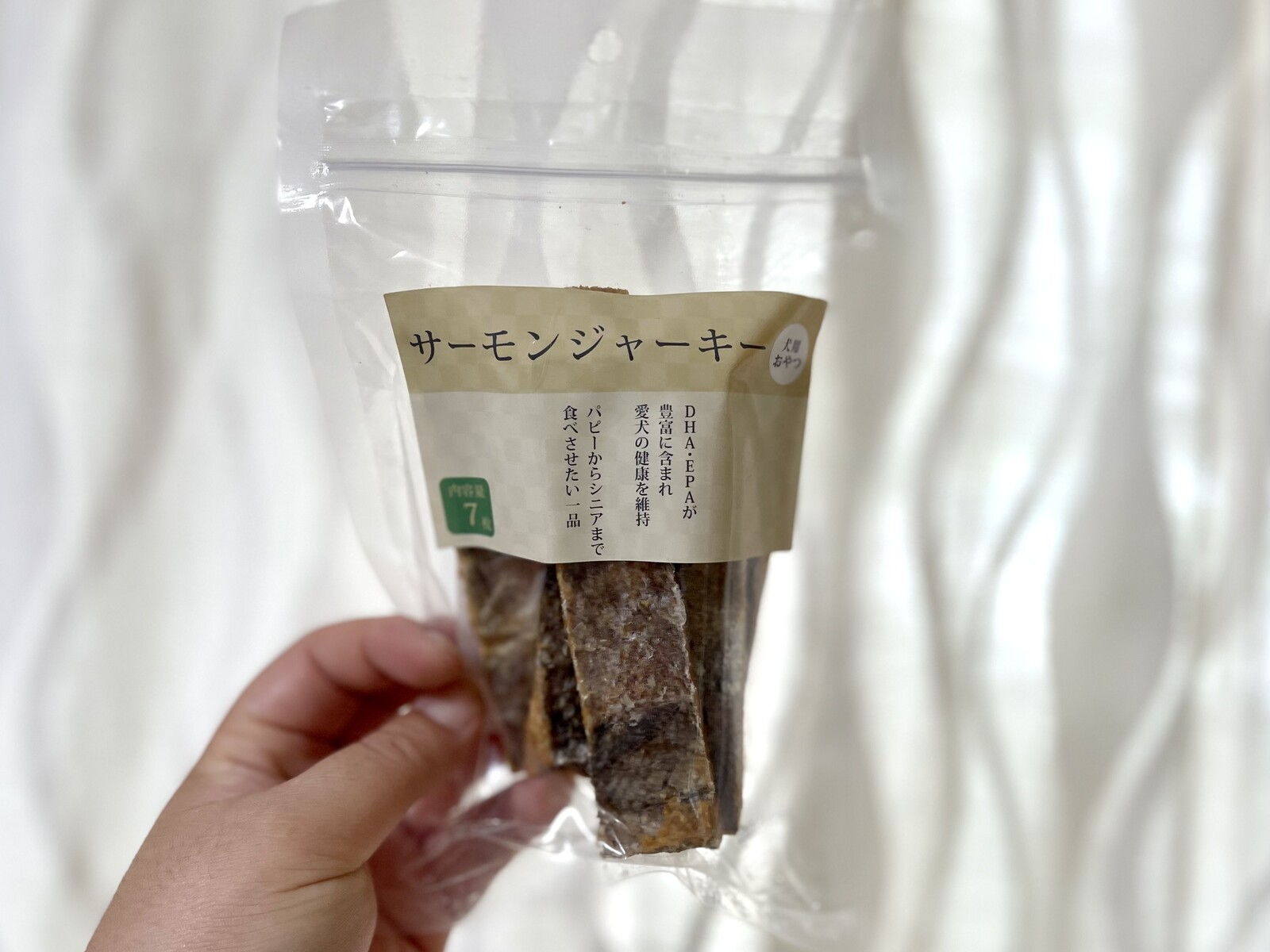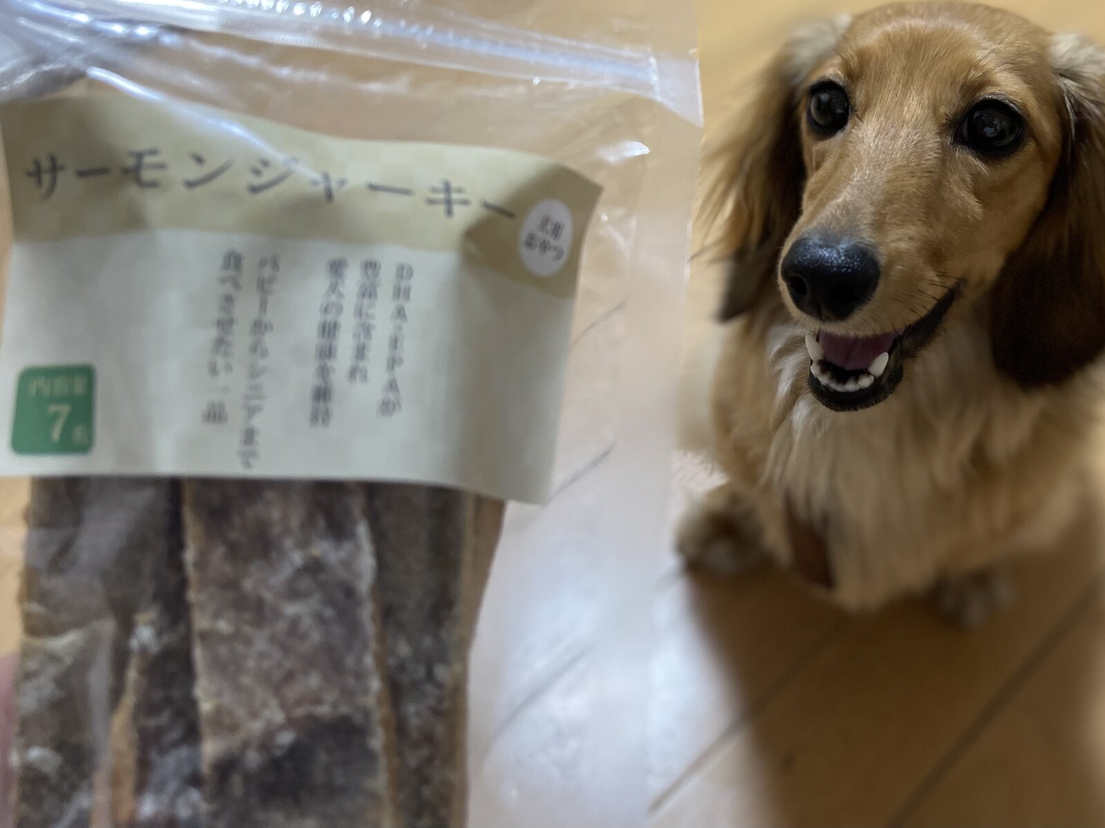 あんまりフードもおかしも食いつき良くないうちの子ですが、このサーモンジャーキーはお気に入り。
