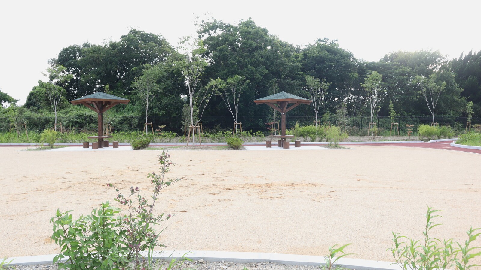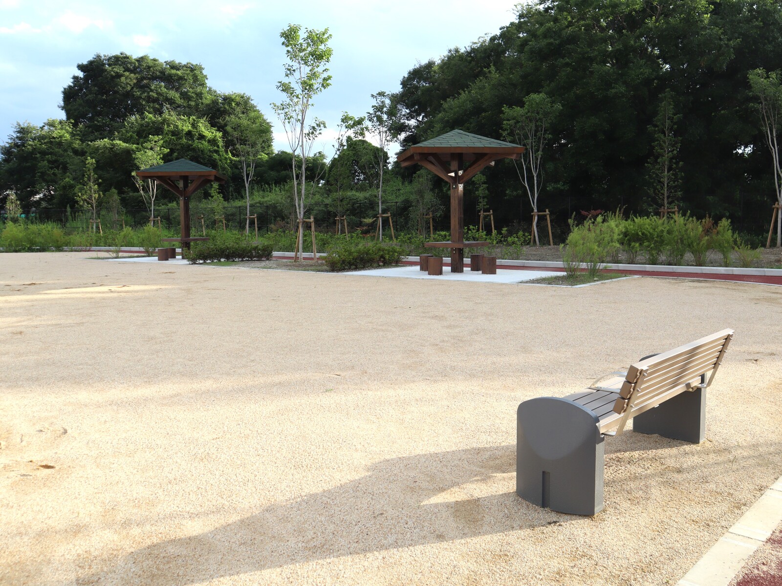 数か所に設置されているベンチに加え、小さな屋根とテーブルとイスがセットになった東屋っぽいものも2つありました。