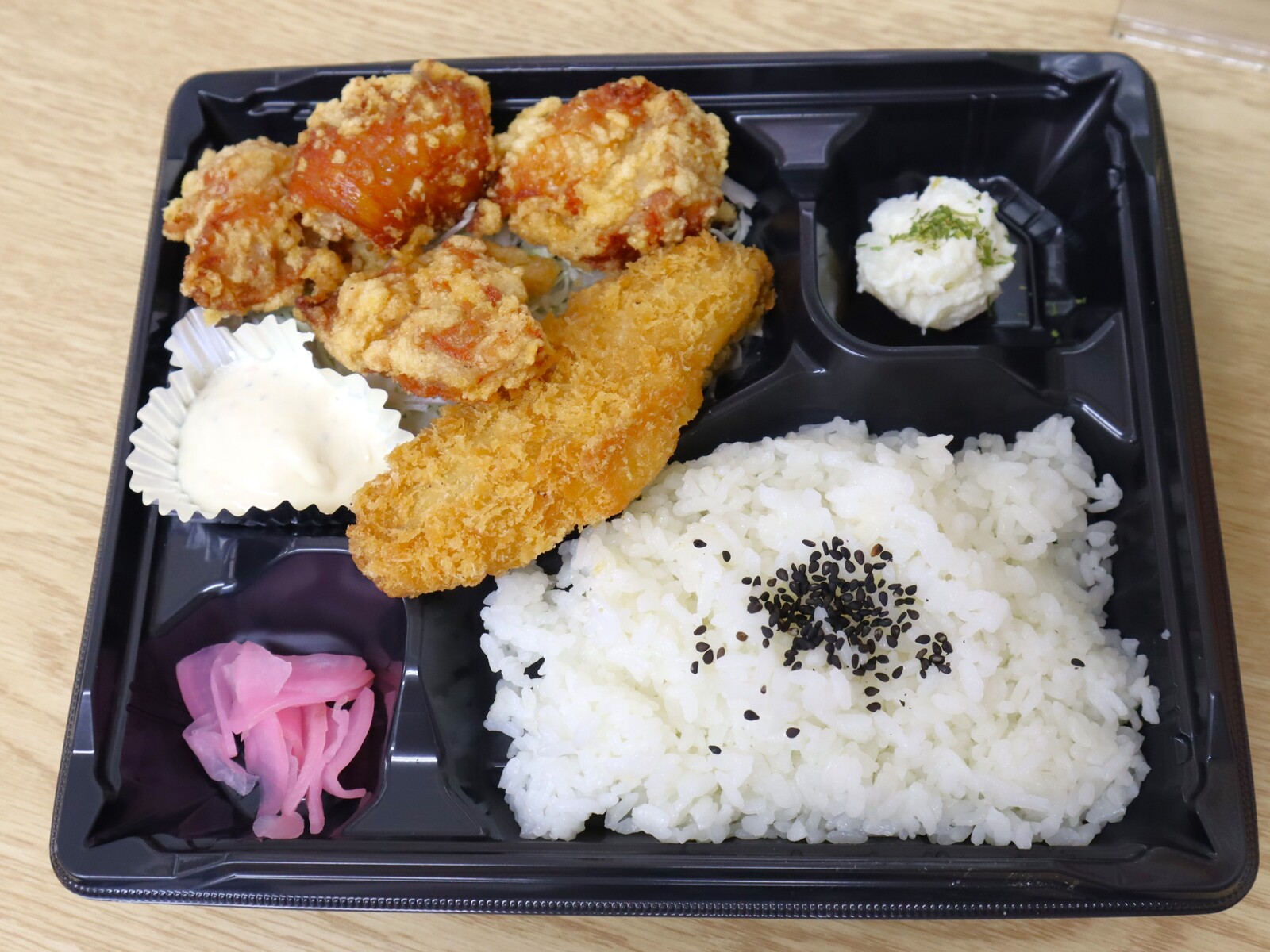 名前のとおりサーモンフライと唐揚げが入ったお弁当。