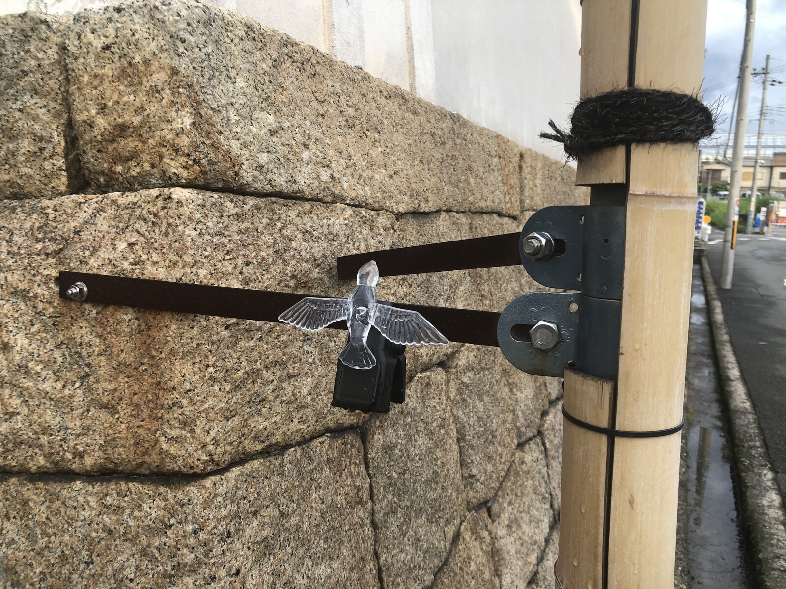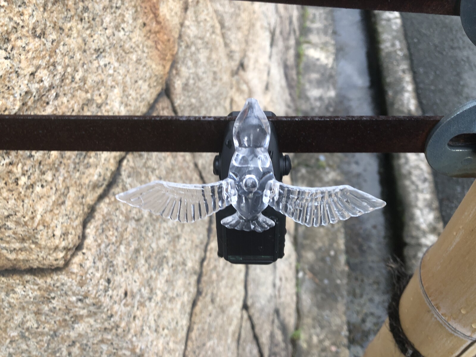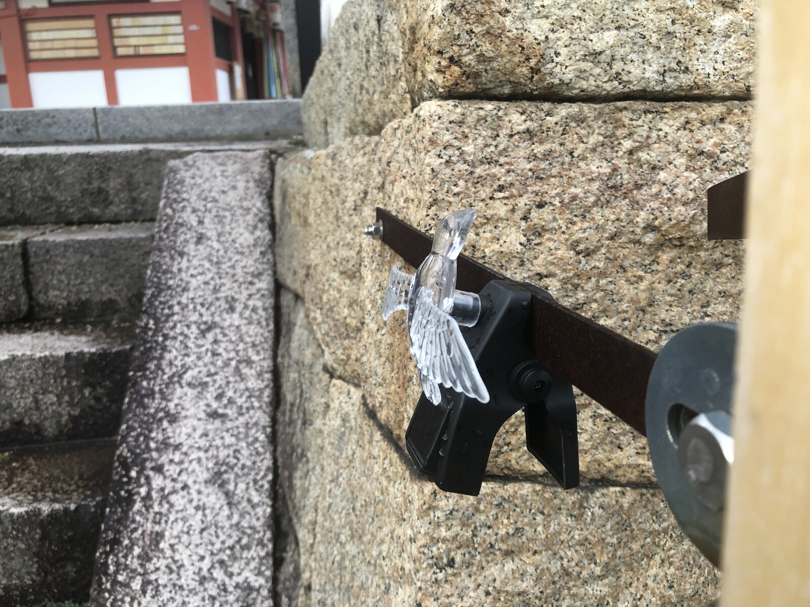 たまたま歩いてたら留め具があって、「えっ!?もしかしてこの凸の穴にクリスタルバードがピタッと付くのではーーー」とか何というかそういう感じで後からたまたま取り付けられたもの