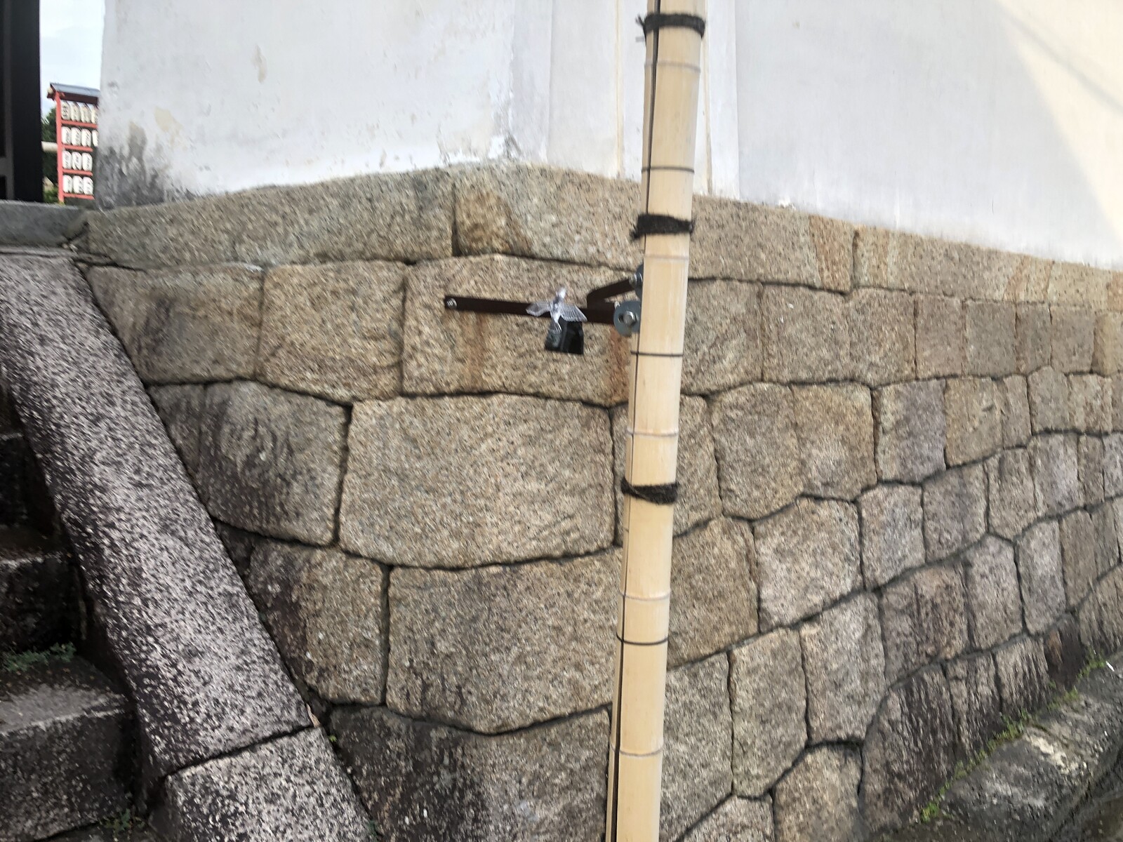 旗か何かを立てるための竹のポールがあるんですがその1つに注目。
