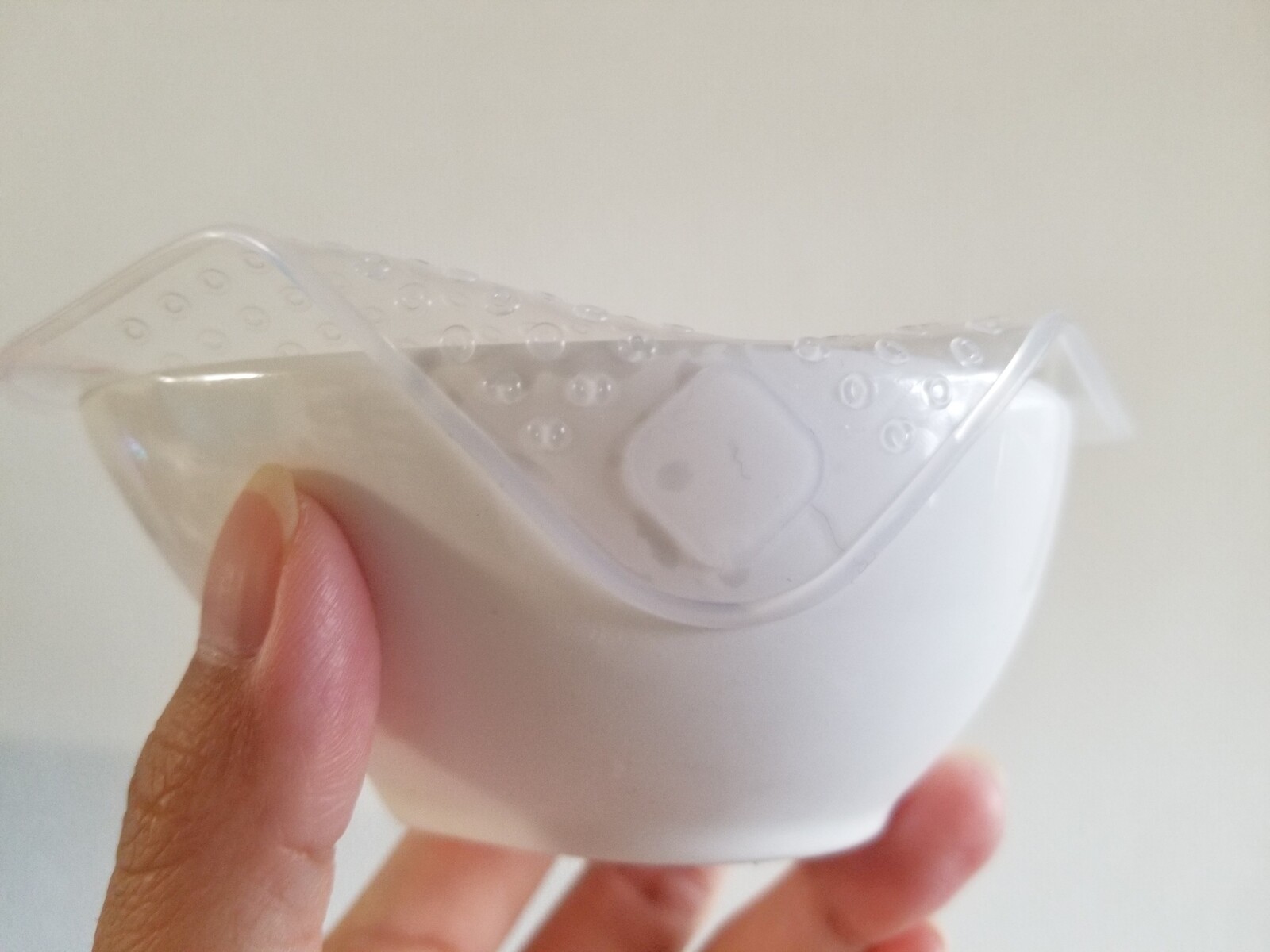 そしてさらに嬉しいのは滑り止めが付いていて、上の写真のようにピタッと器にくっついてくれること。