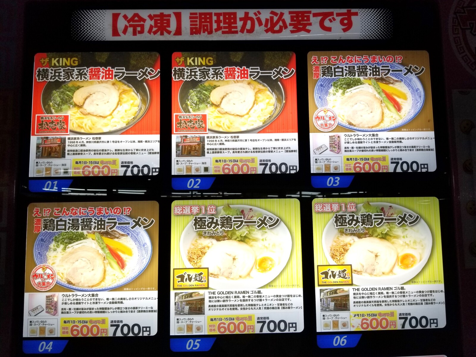 今回は横浜家系醤油ラーメンを購入したいので、1番を選んで押します。