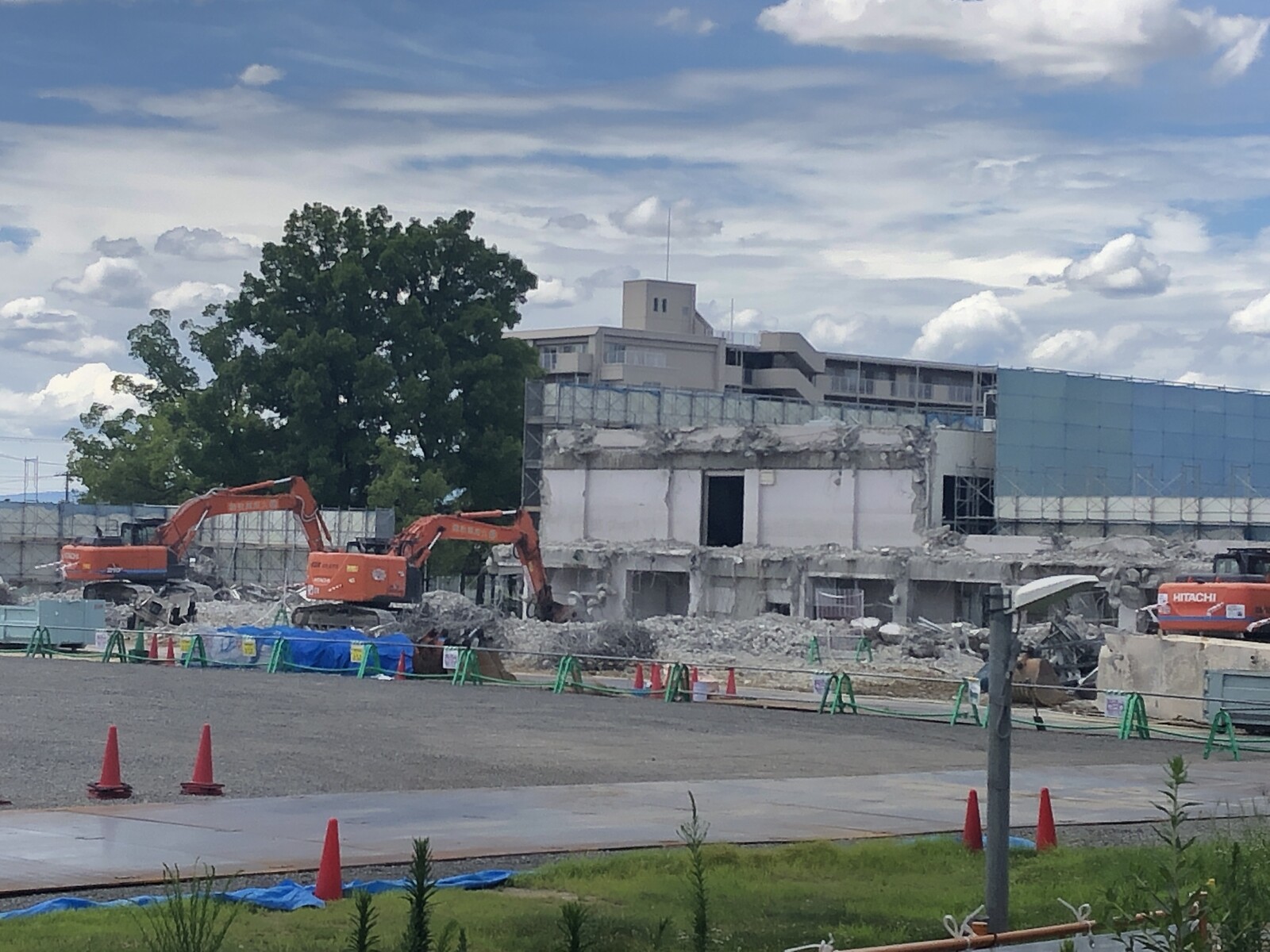 古いほうの校舎と体育館はまだカタチは残っているので、まずは優先的に新しい方の校舎の解体を進めているようです。