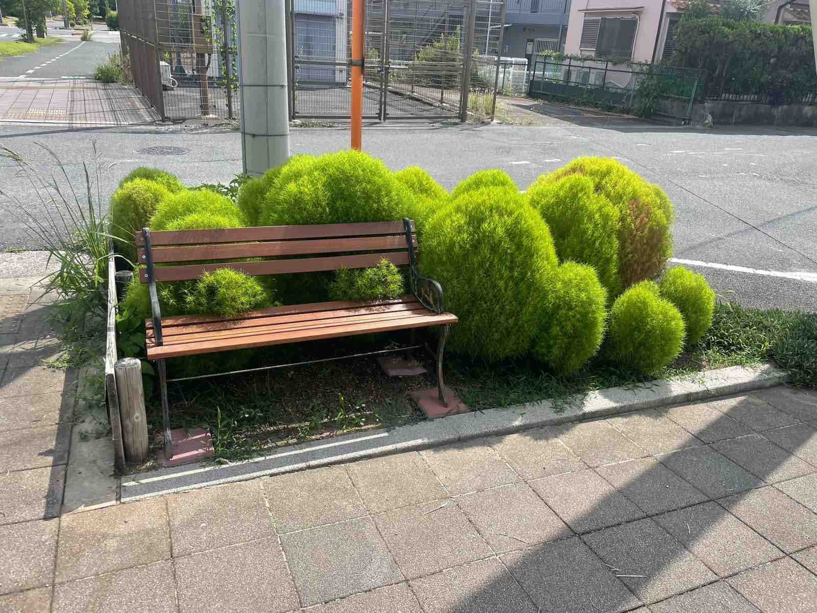 ニョキニョキのコキア!第二京阪高架横の花壇にベンチがいい感じ!