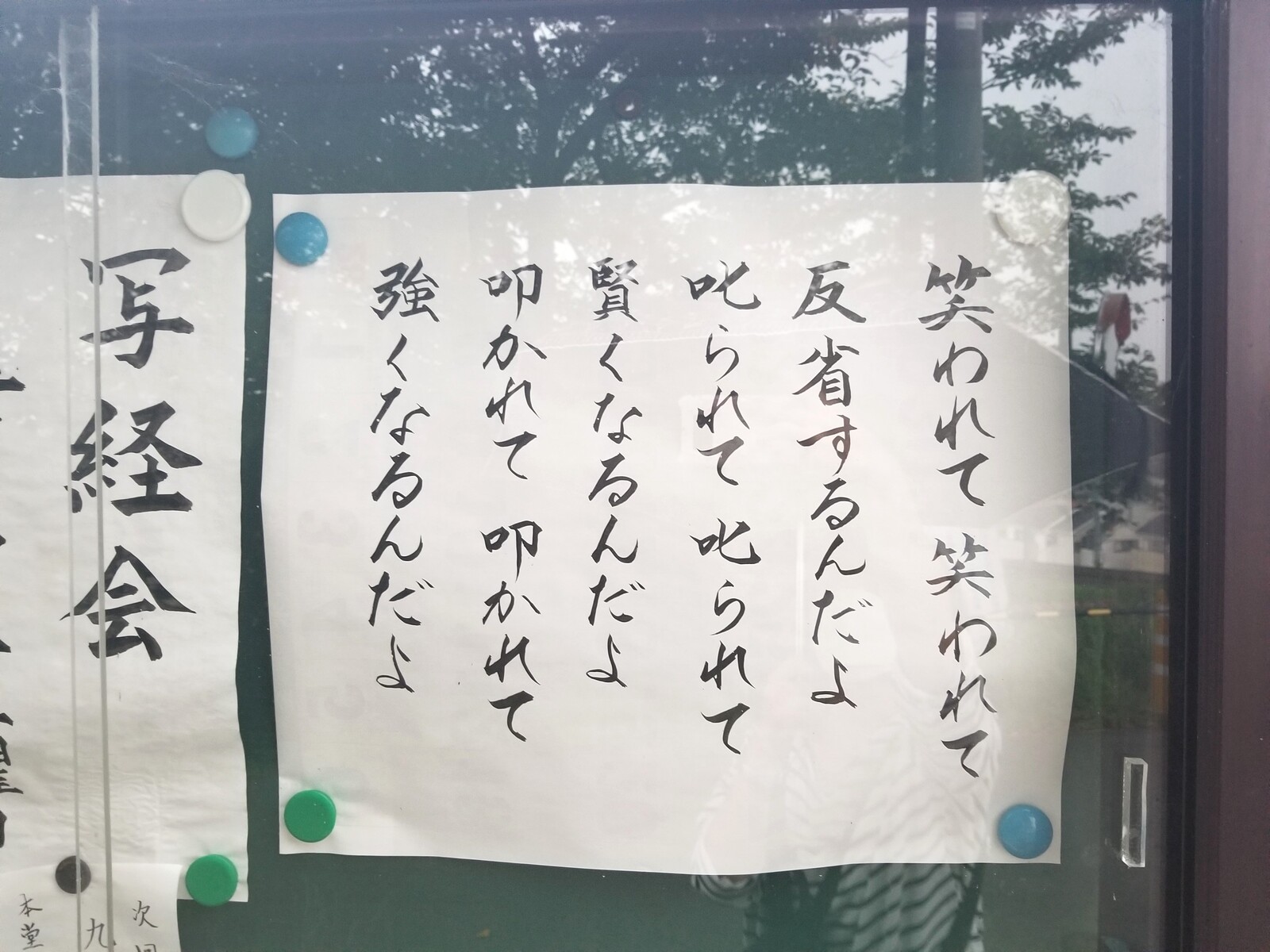 階段手前に写経会のお知らせなどと一緒にありがたいお言葉が掲示されてあります。