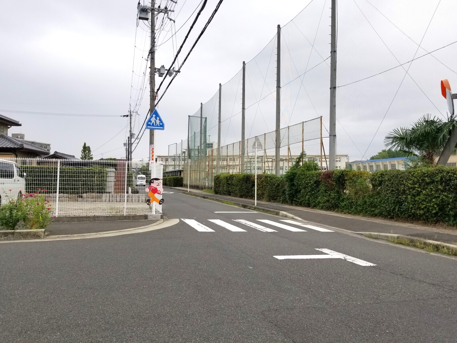 ご紹介する飛び出し坊やがあるのは交野市立第一中学校のすぐ近くで、住所は交野市私部南3丁目付近です。