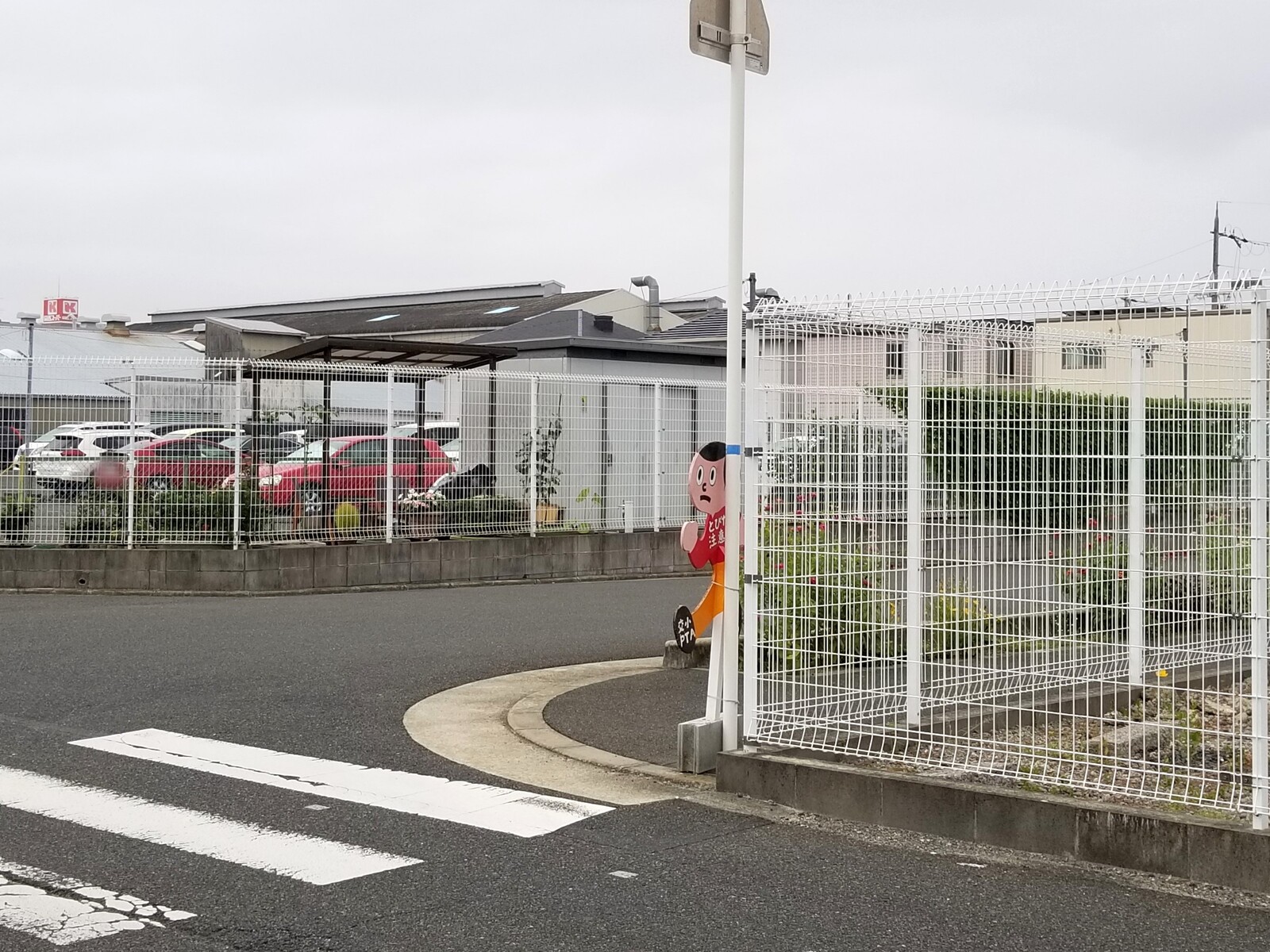 住宅街が並んでいるところでもあり中学校の前でもあるので、車通りが多いこの場所ではベストポジションなのではと思います。