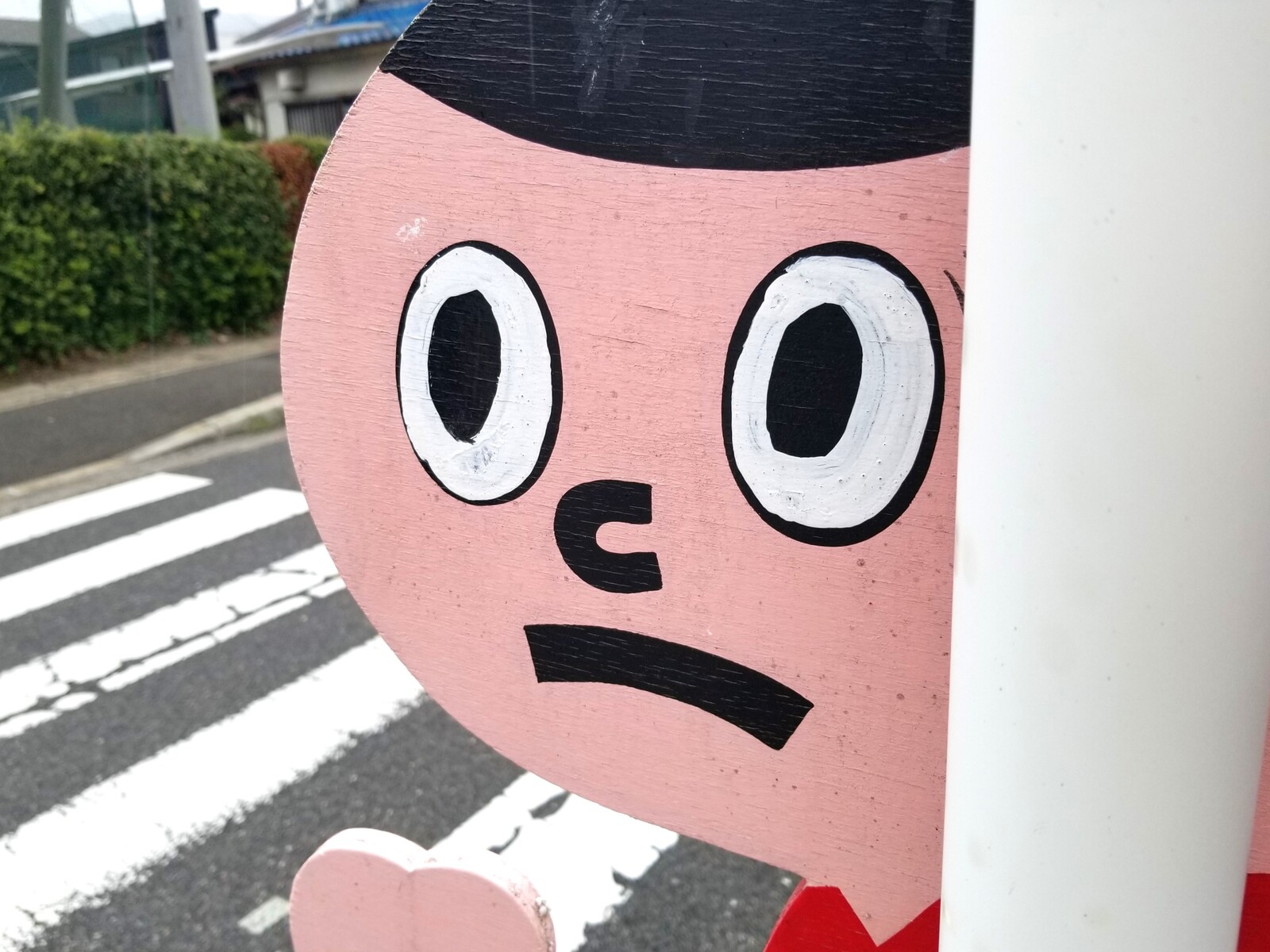 すごく見開いている目から、道路の近くは安全に通ろうね!という想いがひしひしと感じられます。
