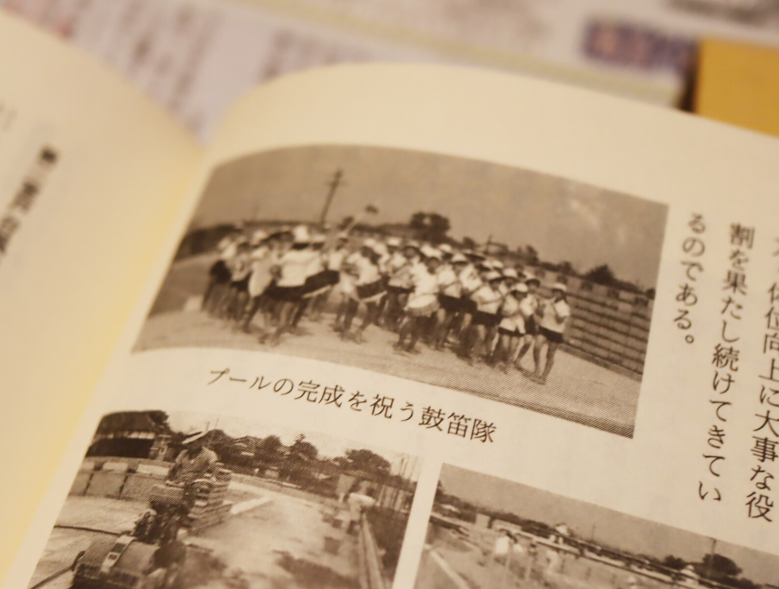 (プールの完成を祝う鼓笛隊の写真も)