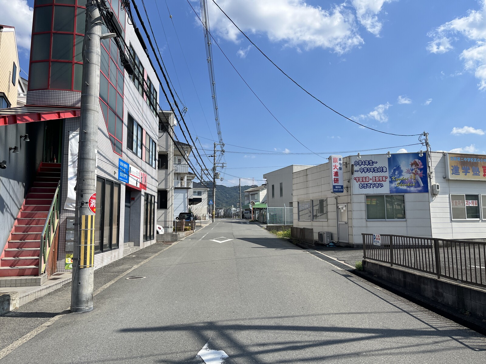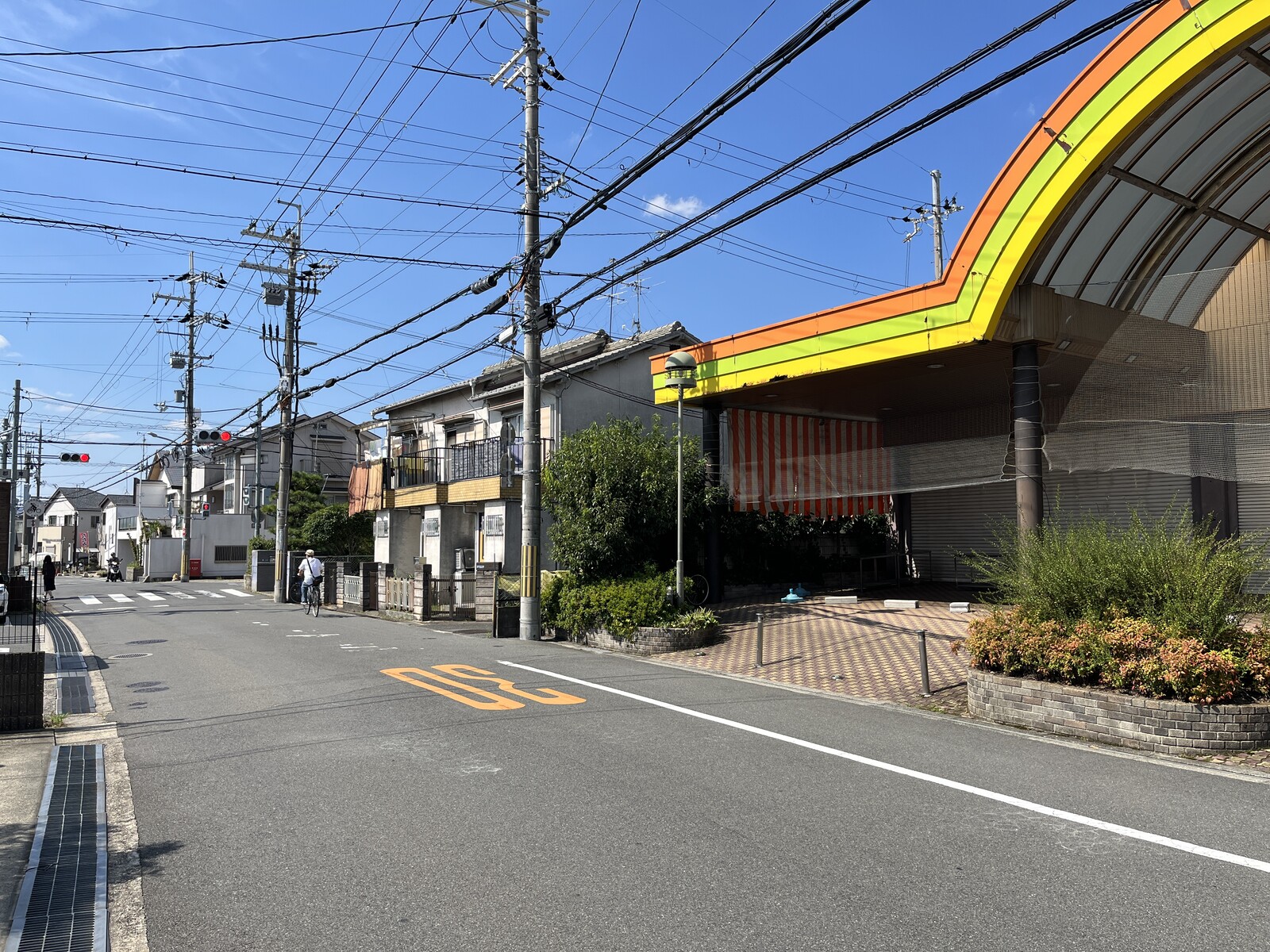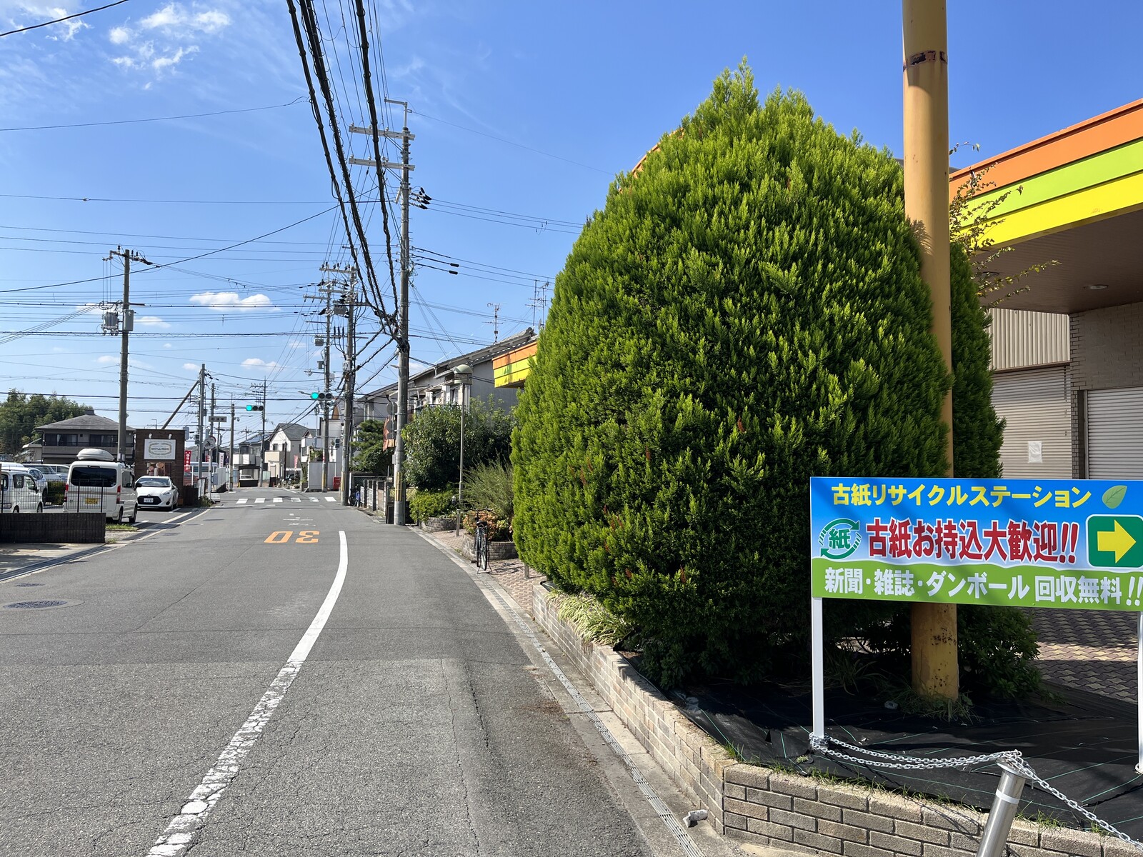 (こっち側、ツジトミ交野店の斜め前はスイーツのお店アミエルさんがあって、この道をさらに真っ直ぐいくと京阪電車の郡津駅方面へ)