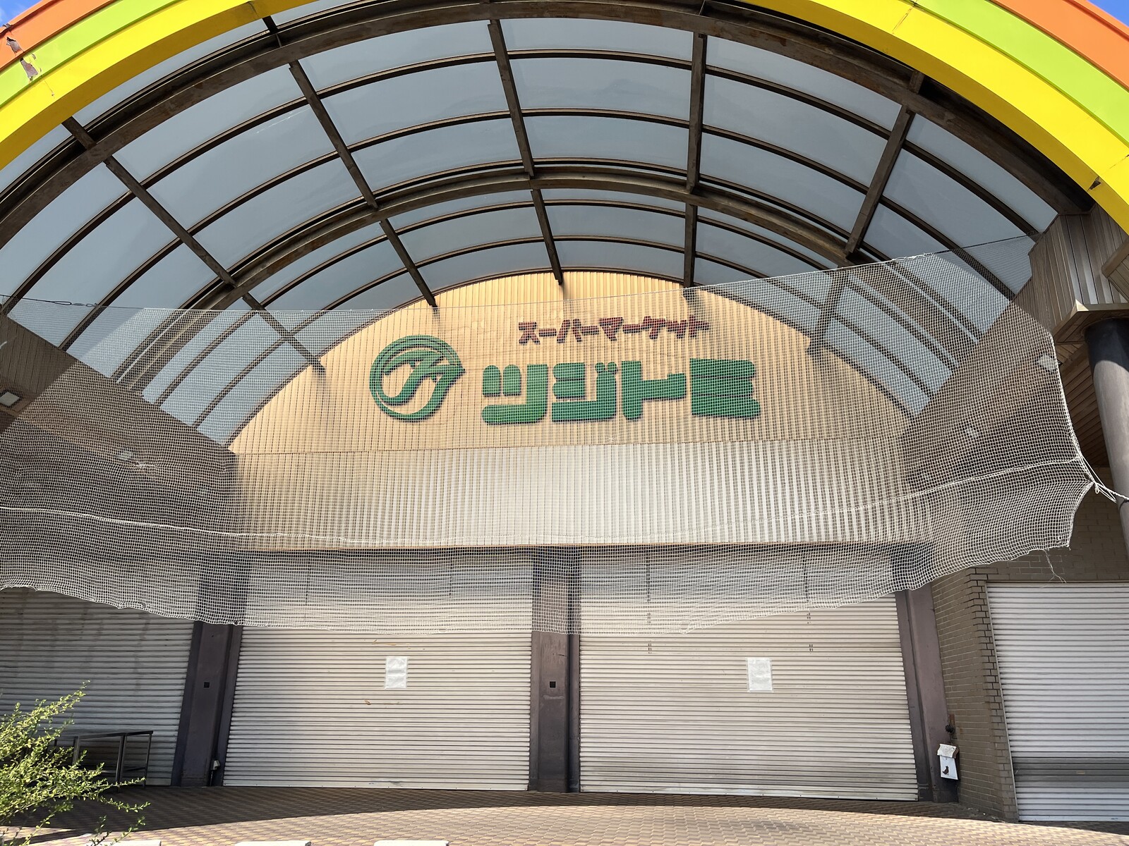 (シャッターのところに貼り紙)