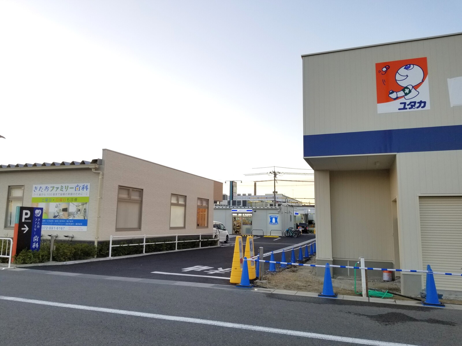 おとなりには2022年2月25日にオープンしたローソン京阪交野タウン店と、同年5月10日に開院したきたおファミリー歯科があります。