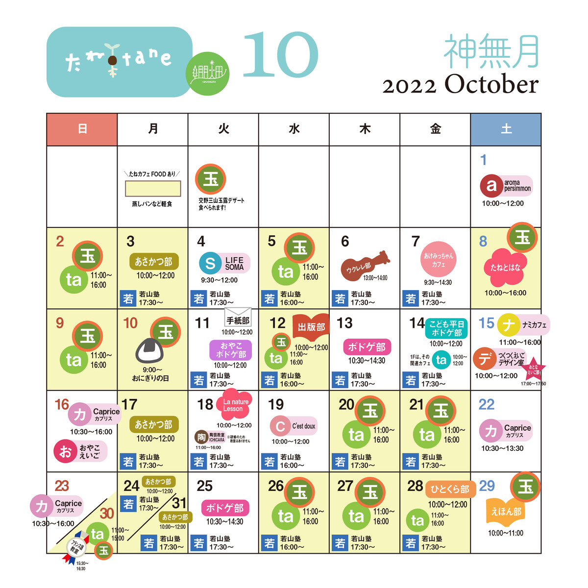 10月、11月は、クリーム色の日がたねカフェオープン日です。
