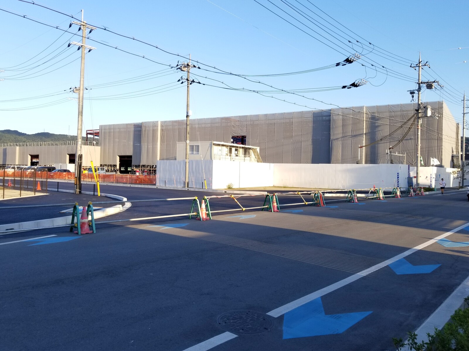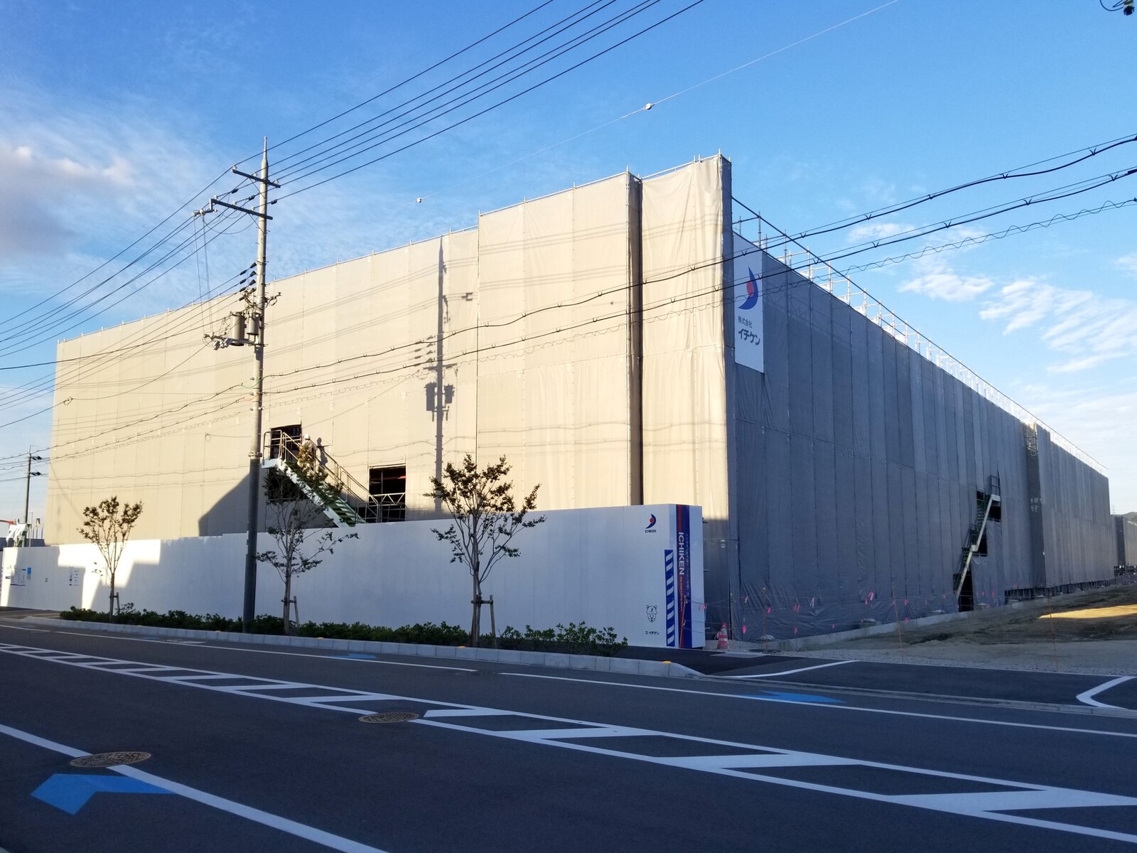 骨組みが出来てグレーのシートがかけられ、以前よりもだいぶ建物っぽいシルエットに。