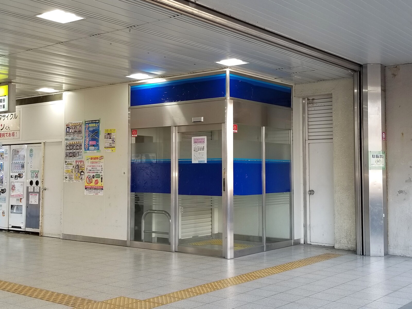 お知らせが貼られていたのは、ATMがあった場所の自動ドア。