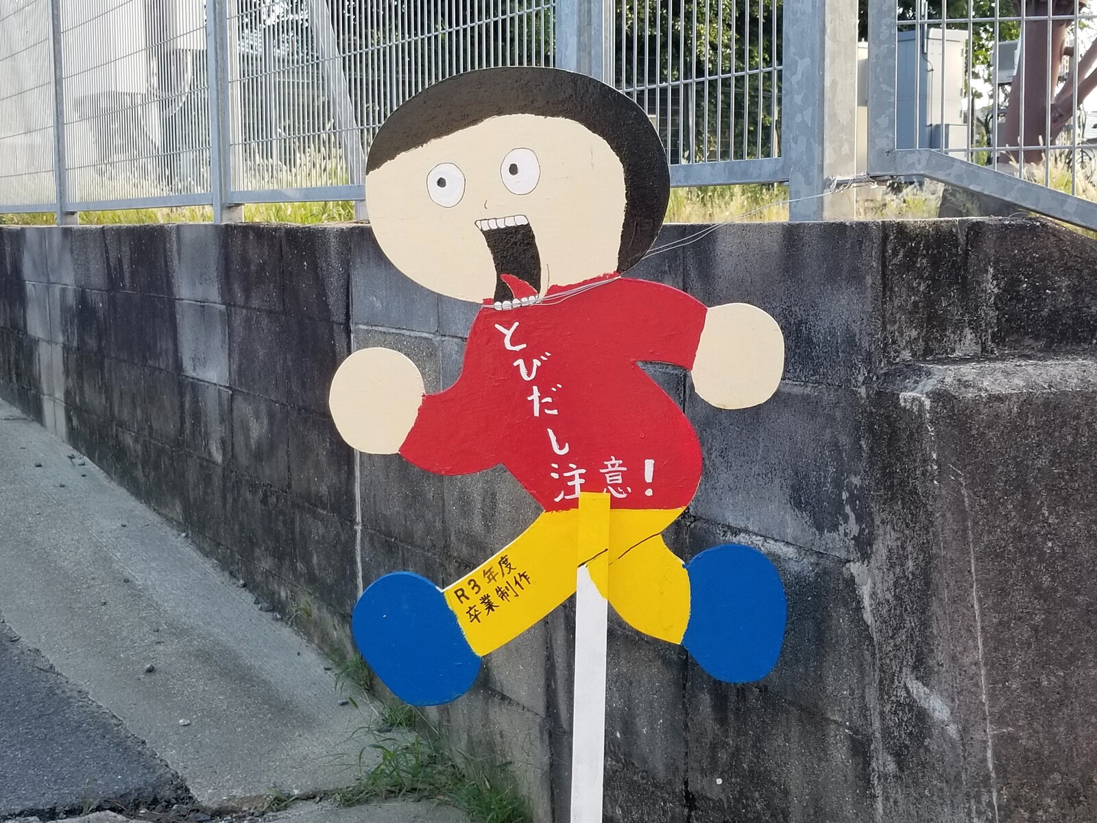 裏と表でぜんぜん違う!私部4丁目にあるオリジナリティあふれる飛び出し坊や!