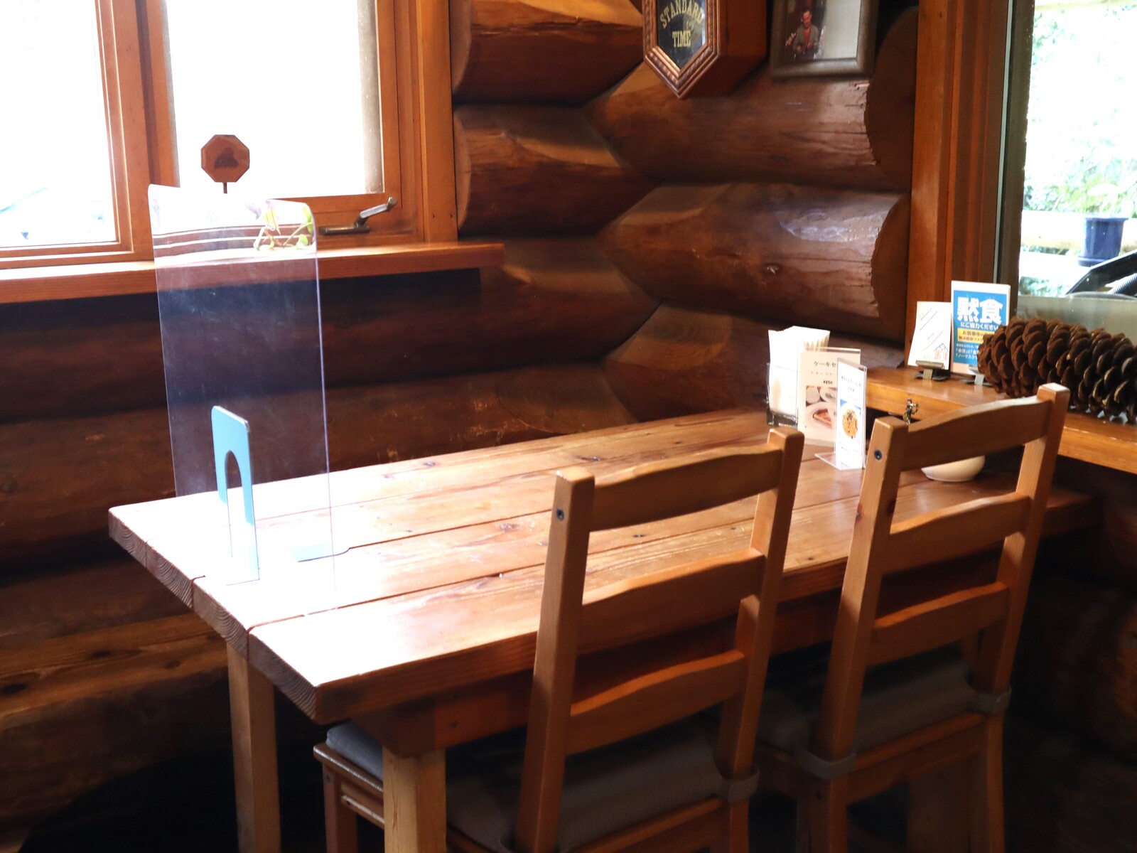 テーブルとイスは店内と同じくあたたかみのあるデザインになっています。