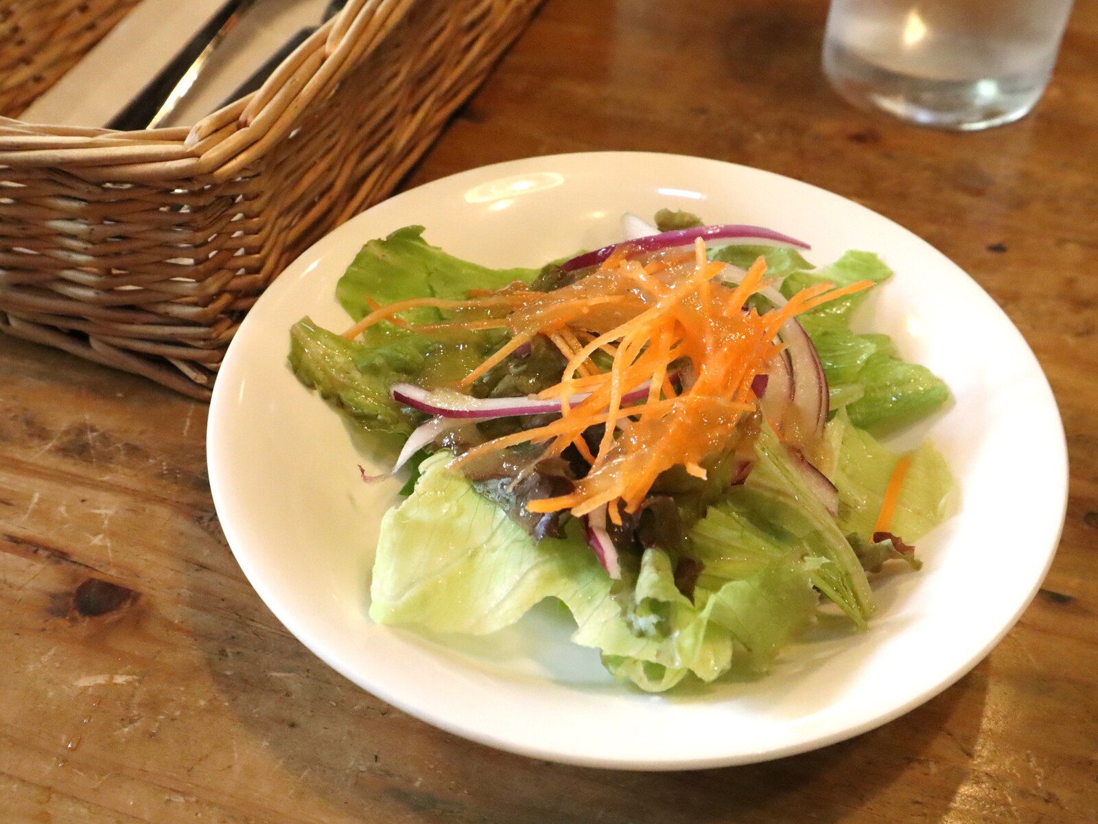 セットのサラダにはドレッシングがかかっていてすぐに食べられます。