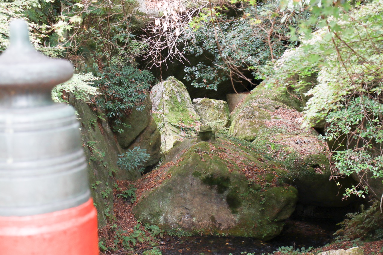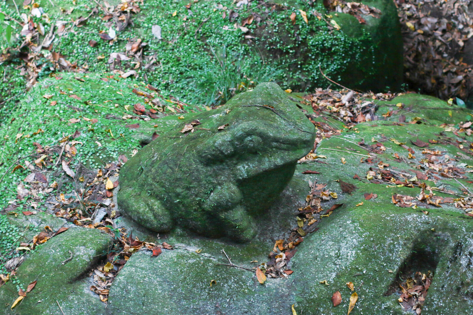 岩窟巡り&天孫降臨伝説で有名な磐船神社。千と千尋の世界にありそうなでっかい蛙がいる!