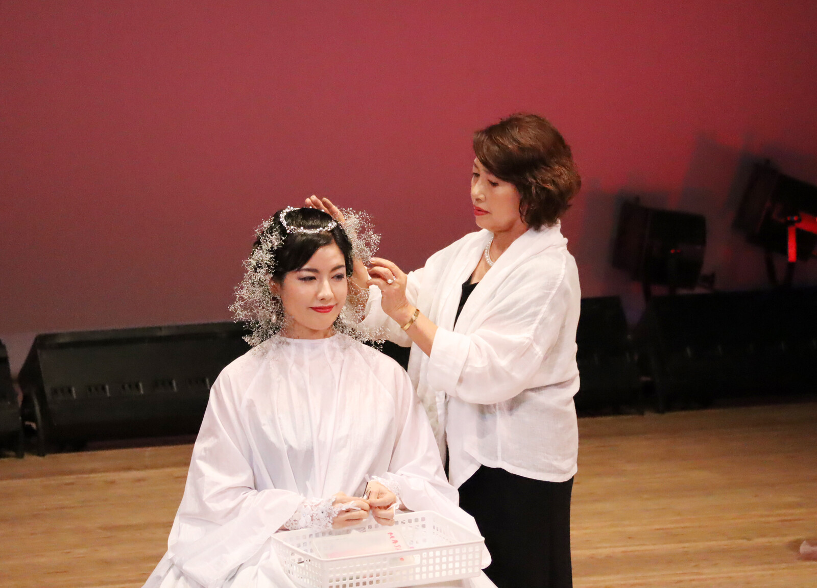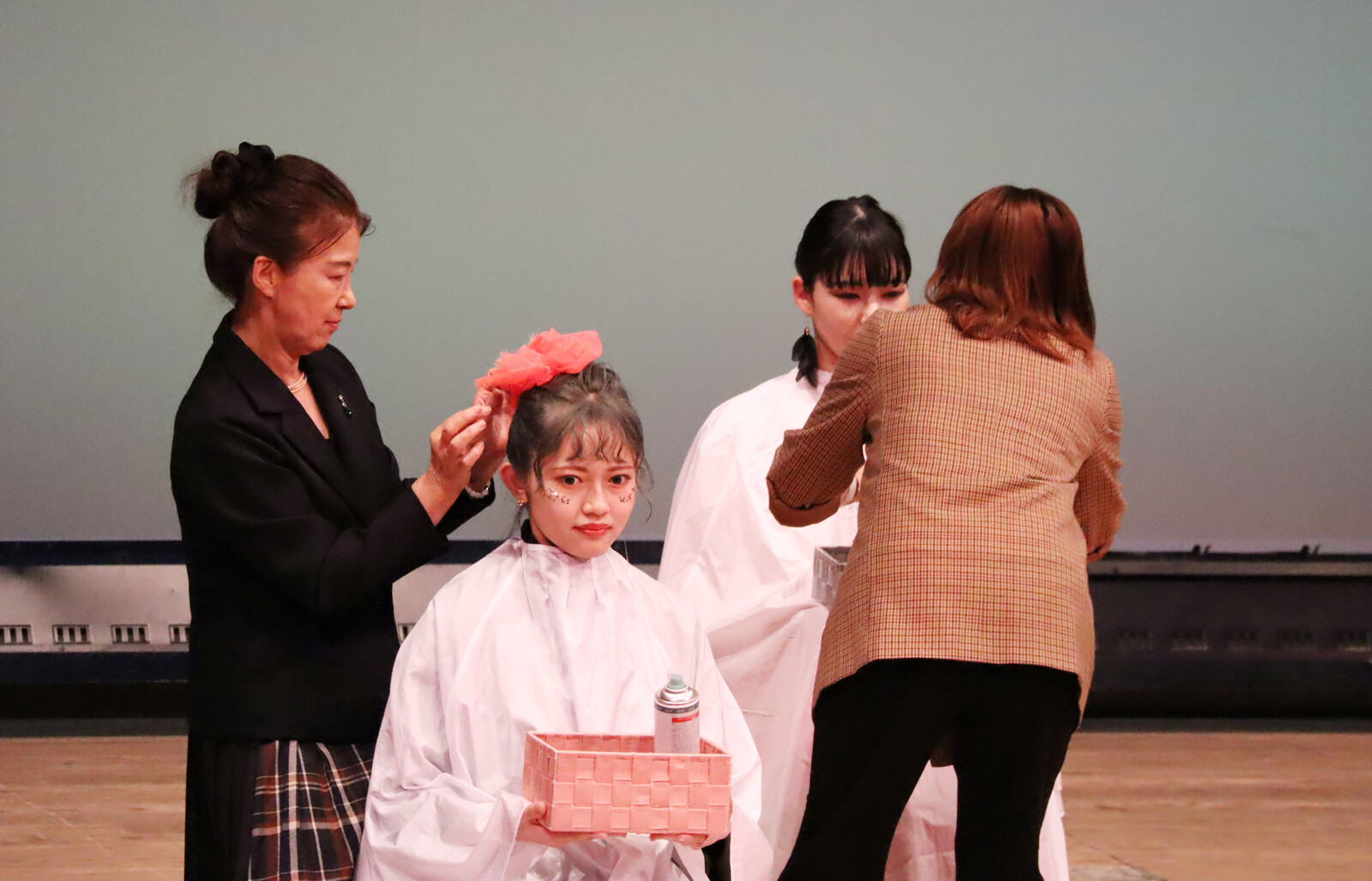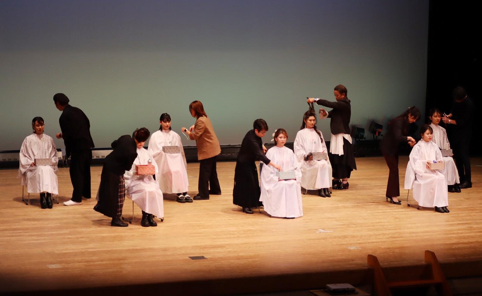 淡々とモデル役スタイリスト役にわかれて仕上げを舞台で展開。