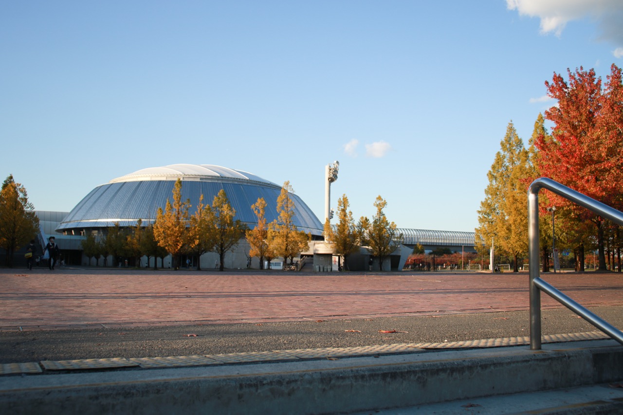 スタードーム前の広場から両側に広がる並木。