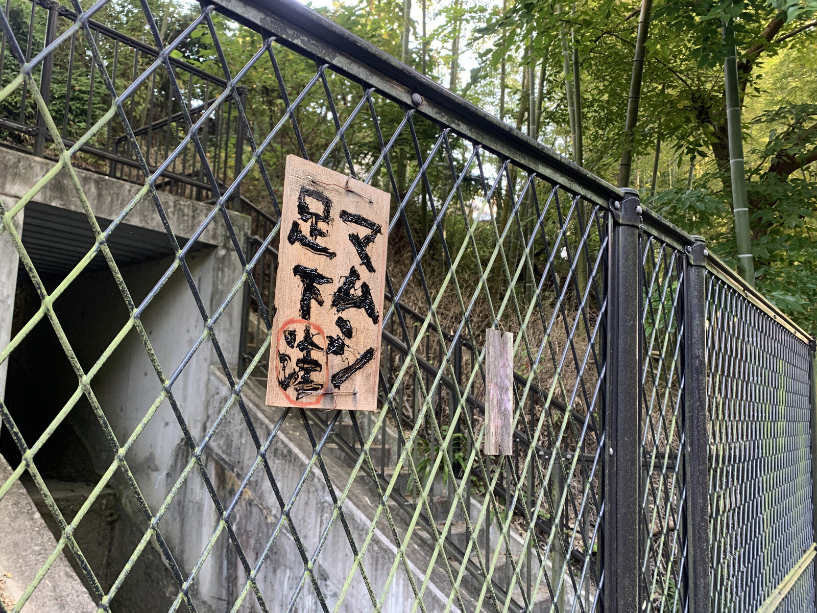 (マムシ足元注意の看板が)