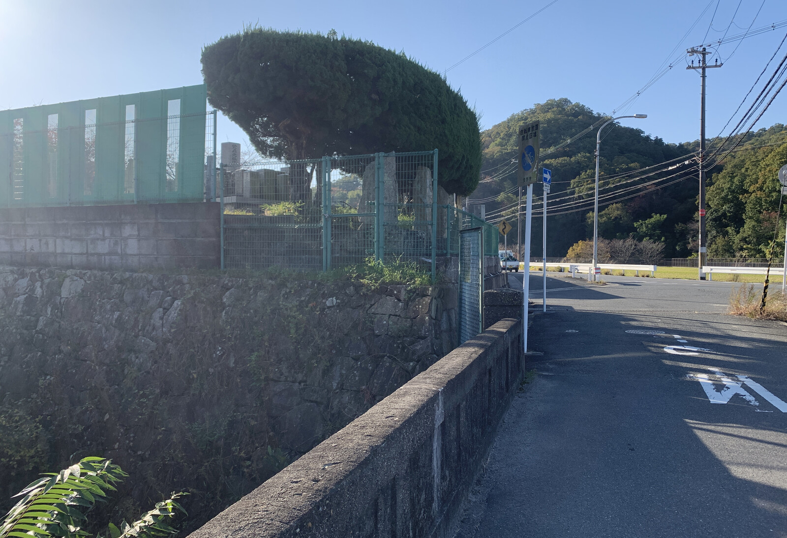 168号線の近く、生駒方面に向かうと「星の里いわふね」、横断歩道を渡ってすぐのところに「大阪公立大学附属植物園」があるところ、