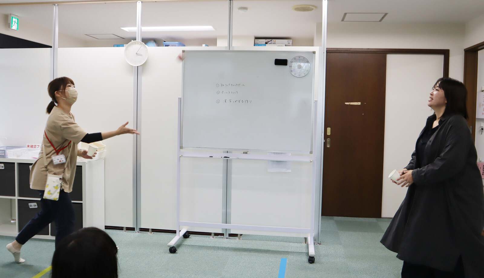 そして、こんな小さな紙コップでキャッチボールとは、そんなん無理ちゃいますのん??と思ってましたが、みなさん一喜一憂しながら、うまくキャッチボールされていました。