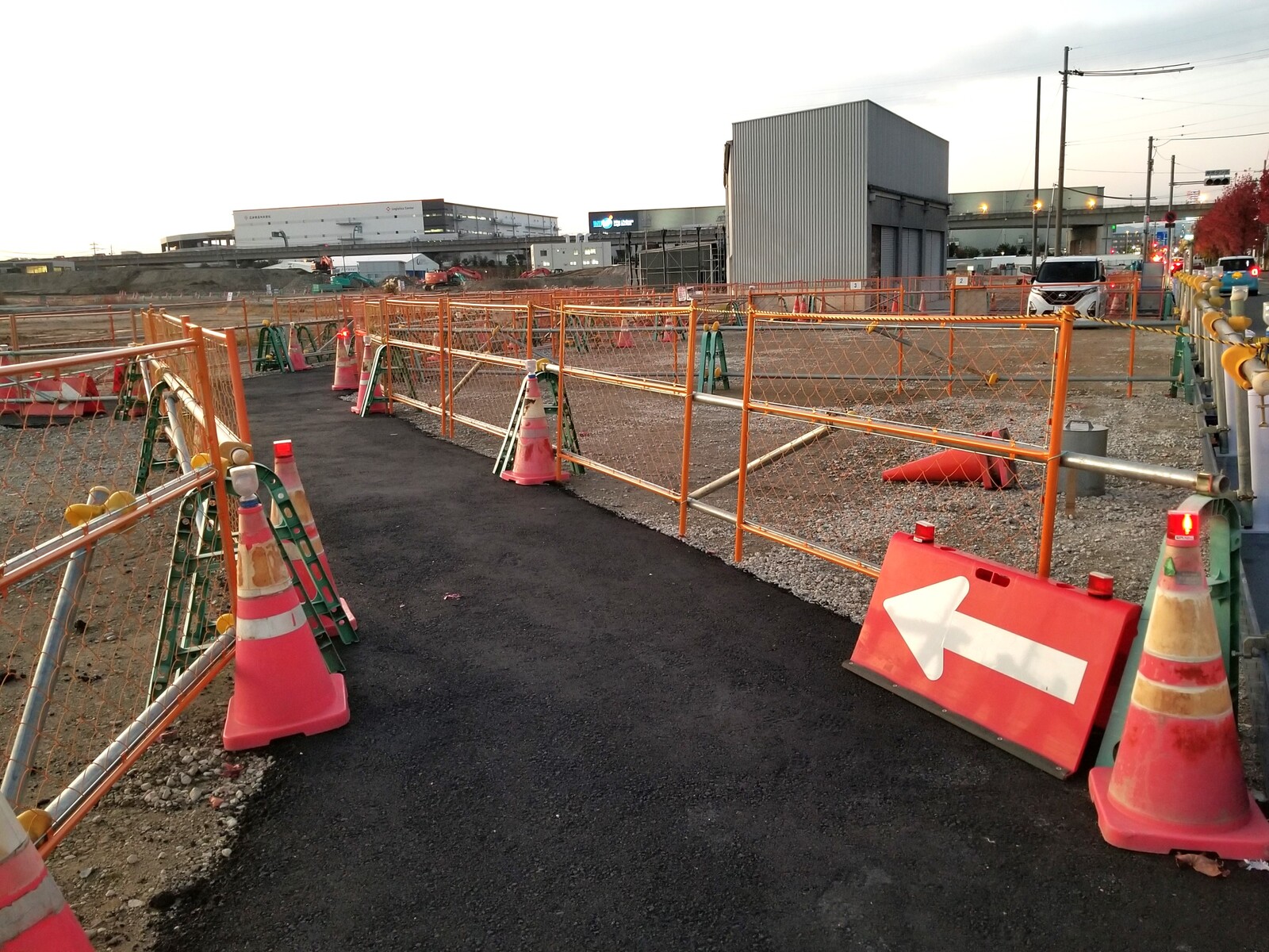 星田駅方面を見ると、工事中のエリアが広がっています。